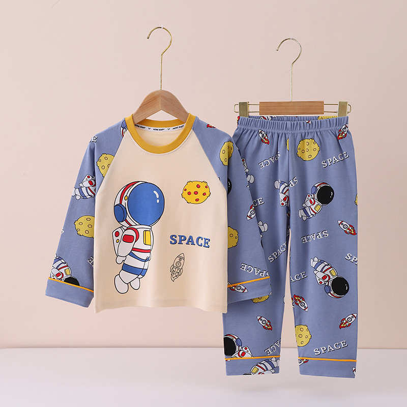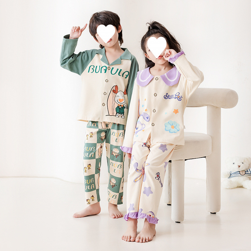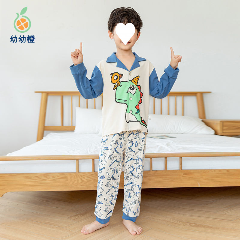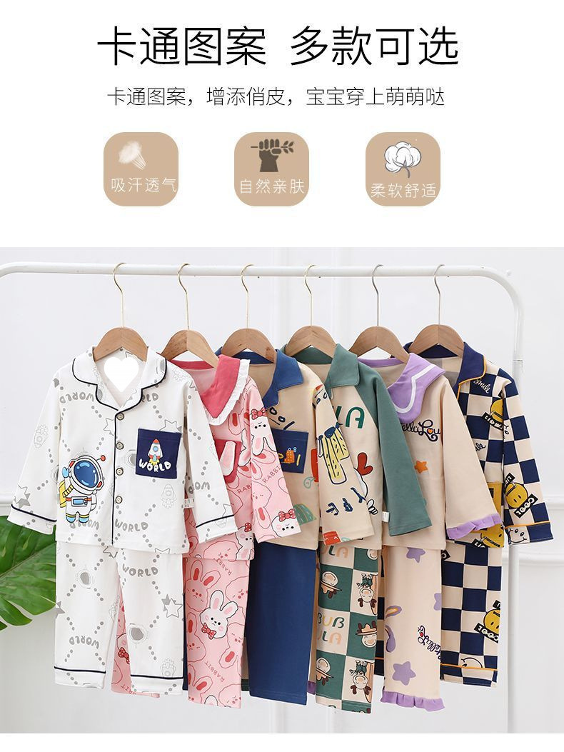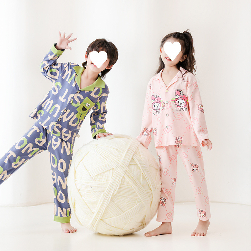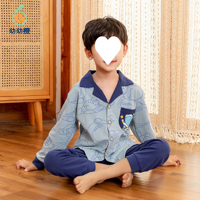 100% 면 어린이 잠옷 소년 소녀 봄과 가을 코튼 홈 옷 부드럽고 편안한 잠옷 세트 홈 폭발스토어 가기
