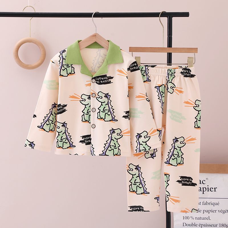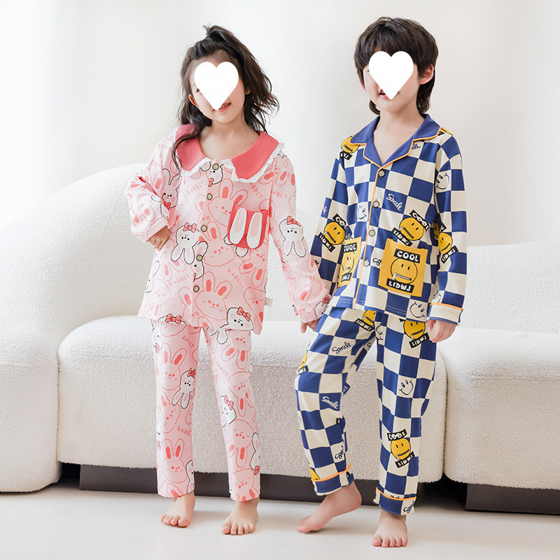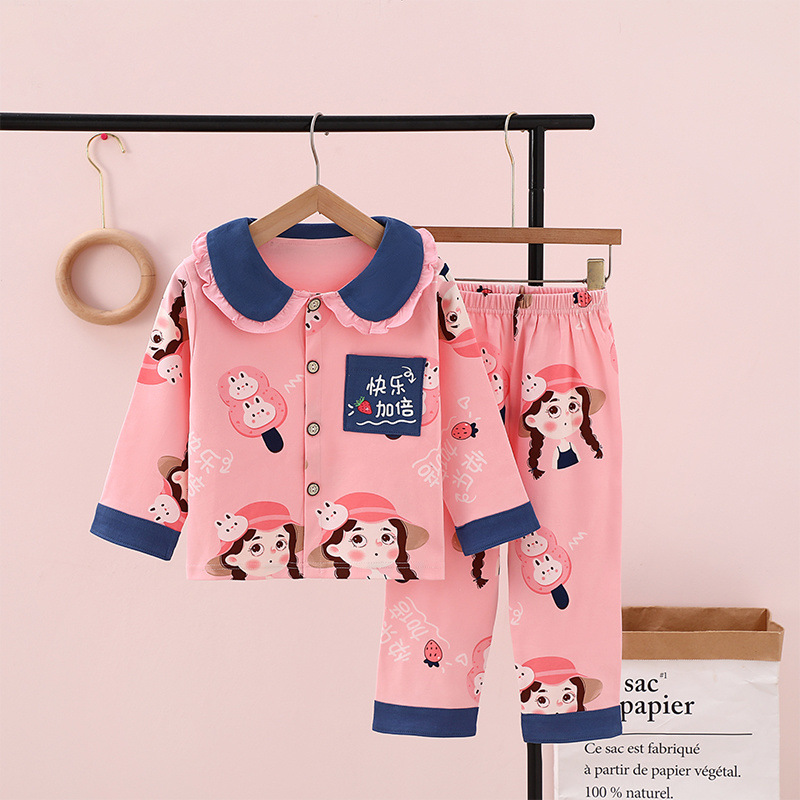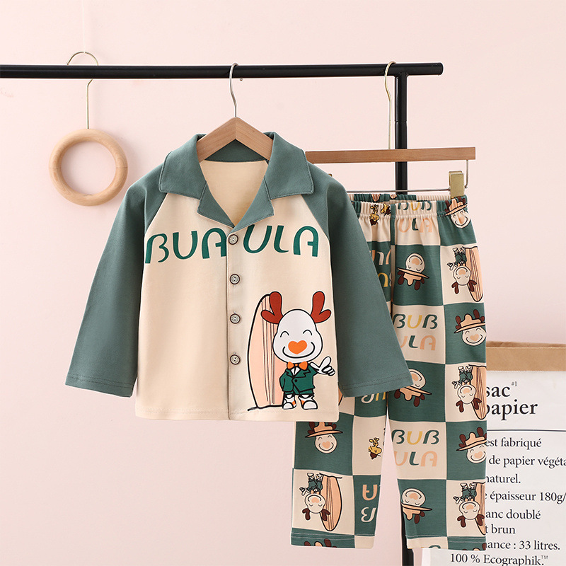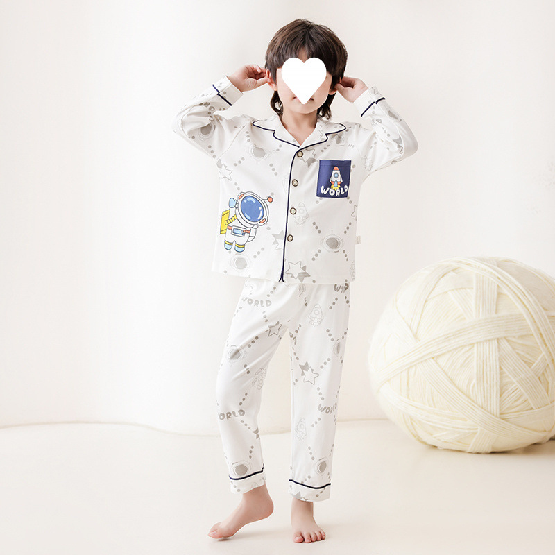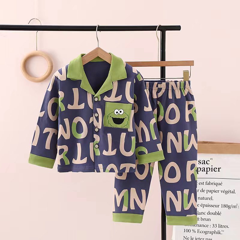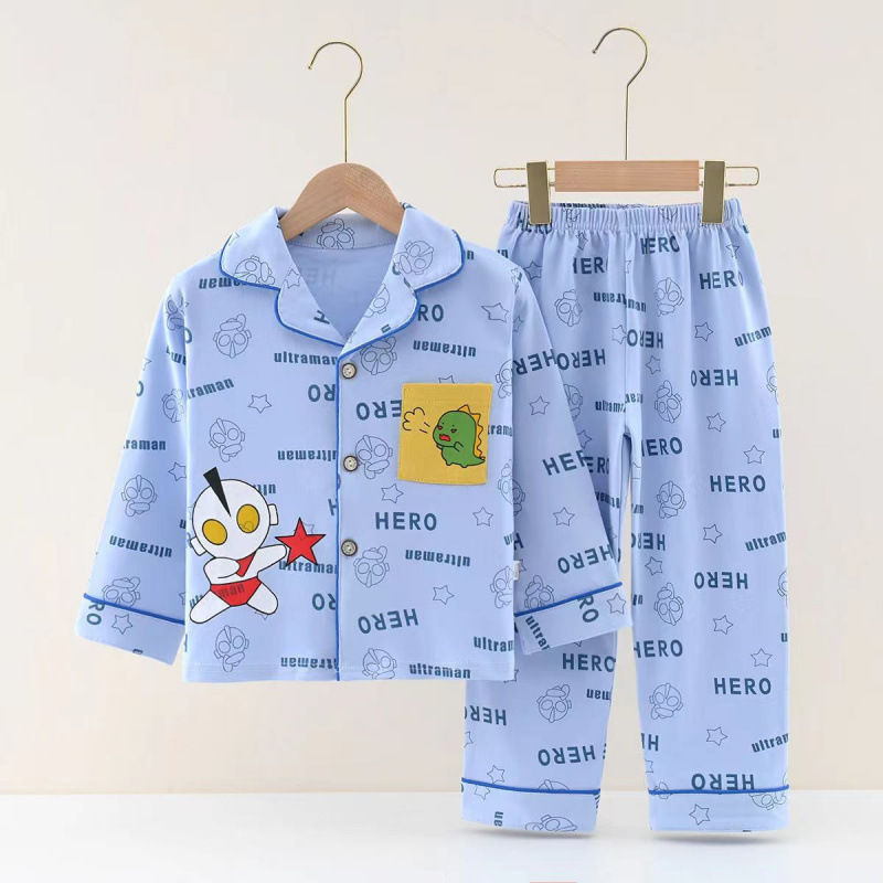 100% 면 어린이 잠옷 소년 소녀 봄과 가을 코튼 홈 옷 부드럽고 편안한 잠옷 세트 홈 폭발스토어 가기