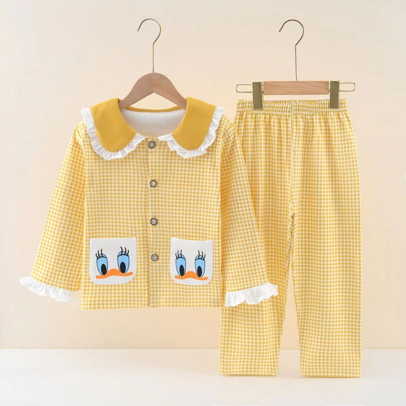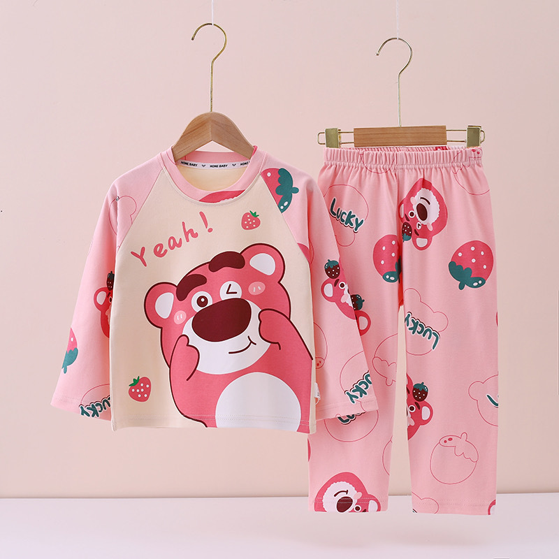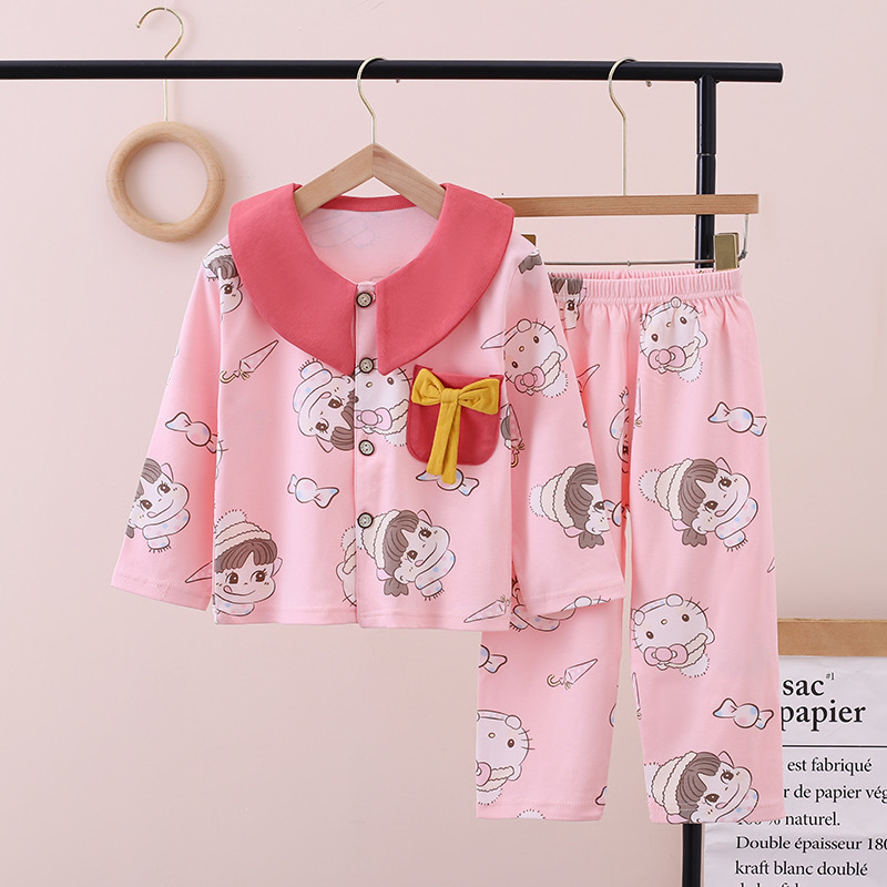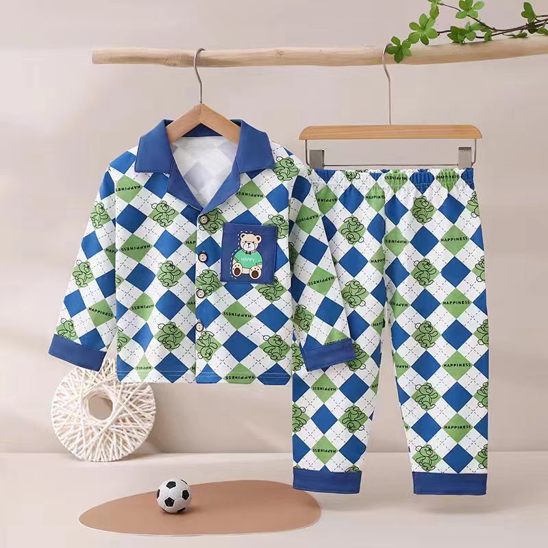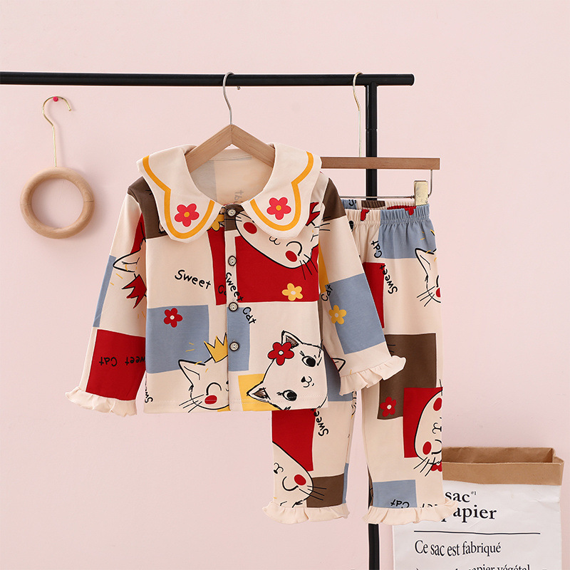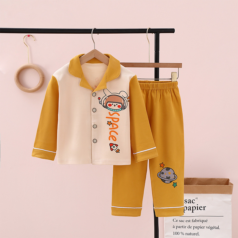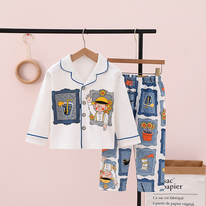 100% 면 어린이 잠옷 소년 소녀 봄과 가을 코튼 홈 옷 부드럽고 편안한 잠옷 세트 홈 폭발스토어 가기