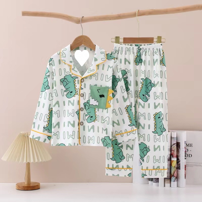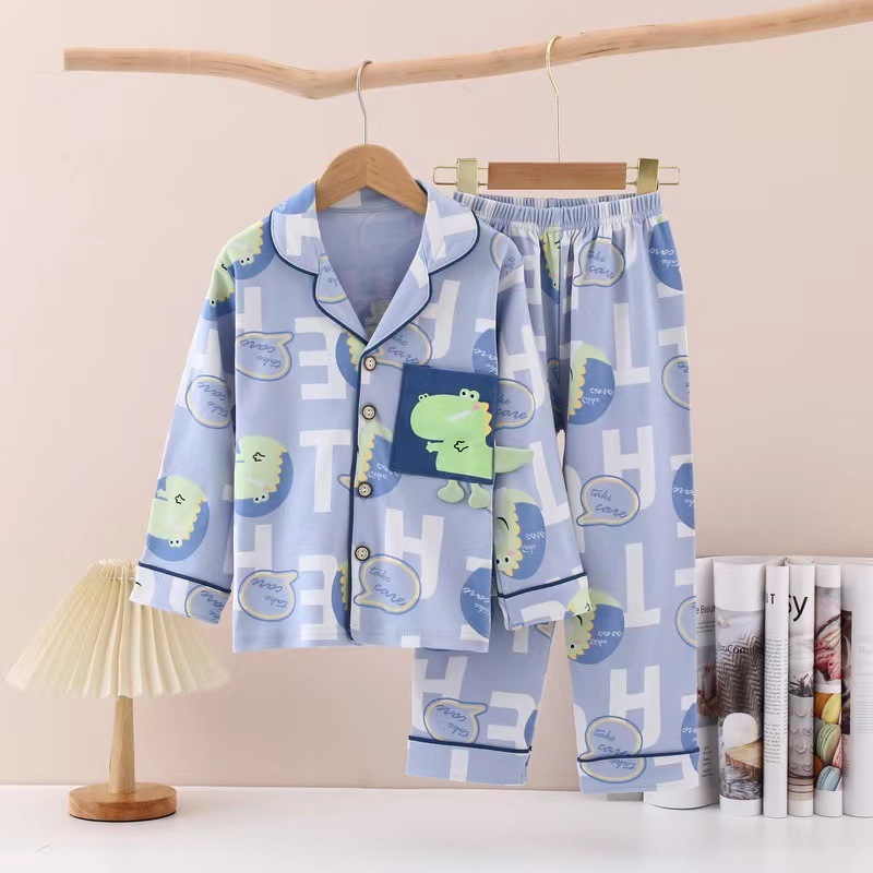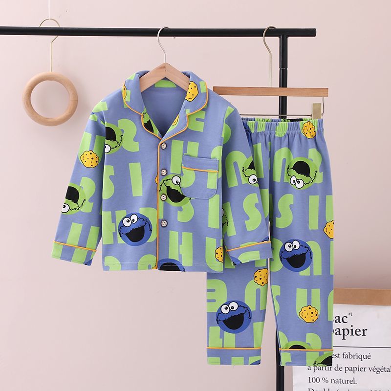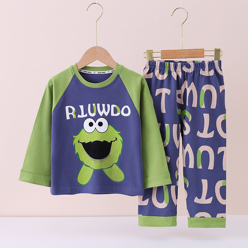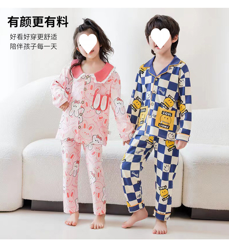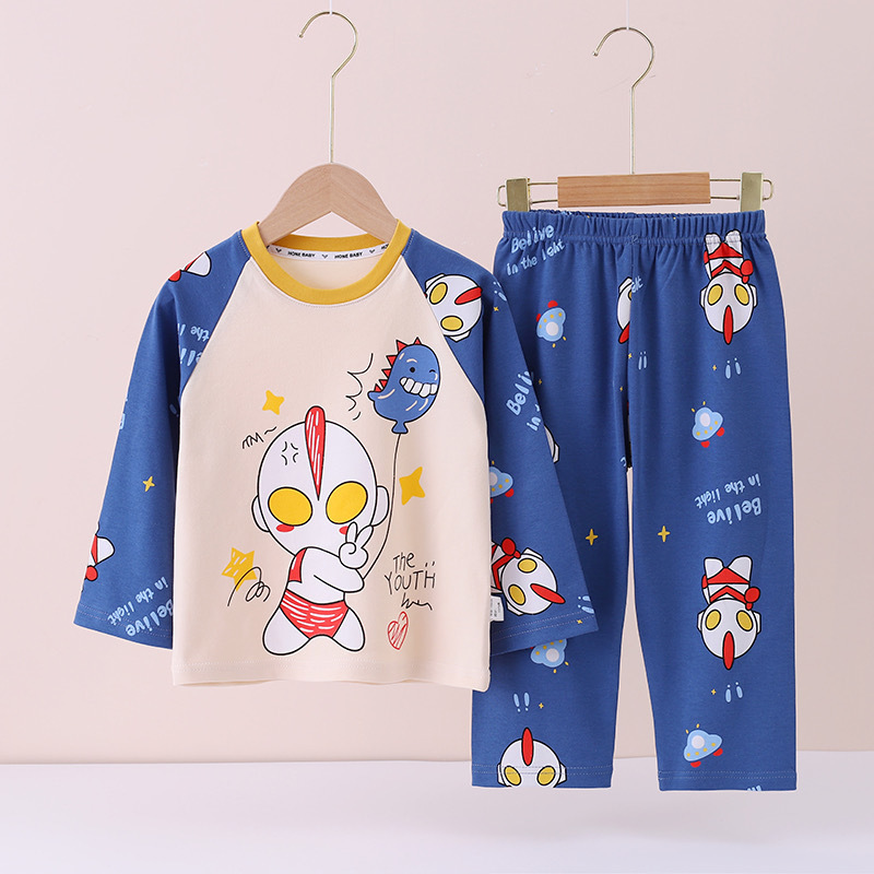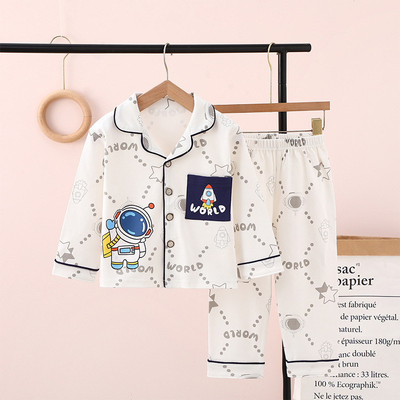100% 면 어린이 잠옷 소년 소녀 봄과 가을 면화 홈 의류 부드럽고 편안한 잠옷 세트 홈 의류스토어 가기