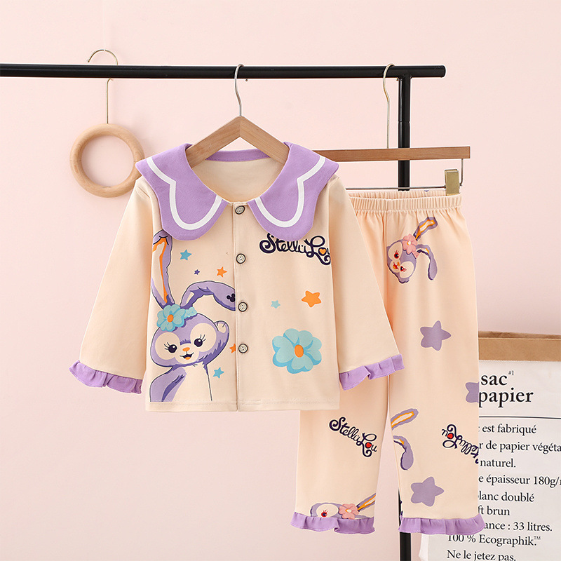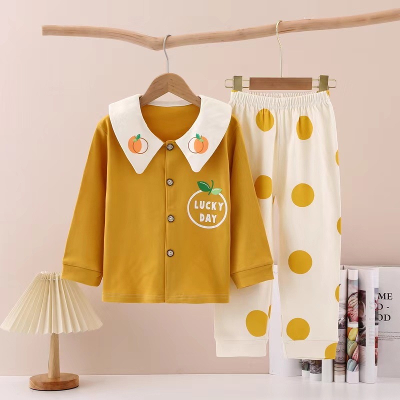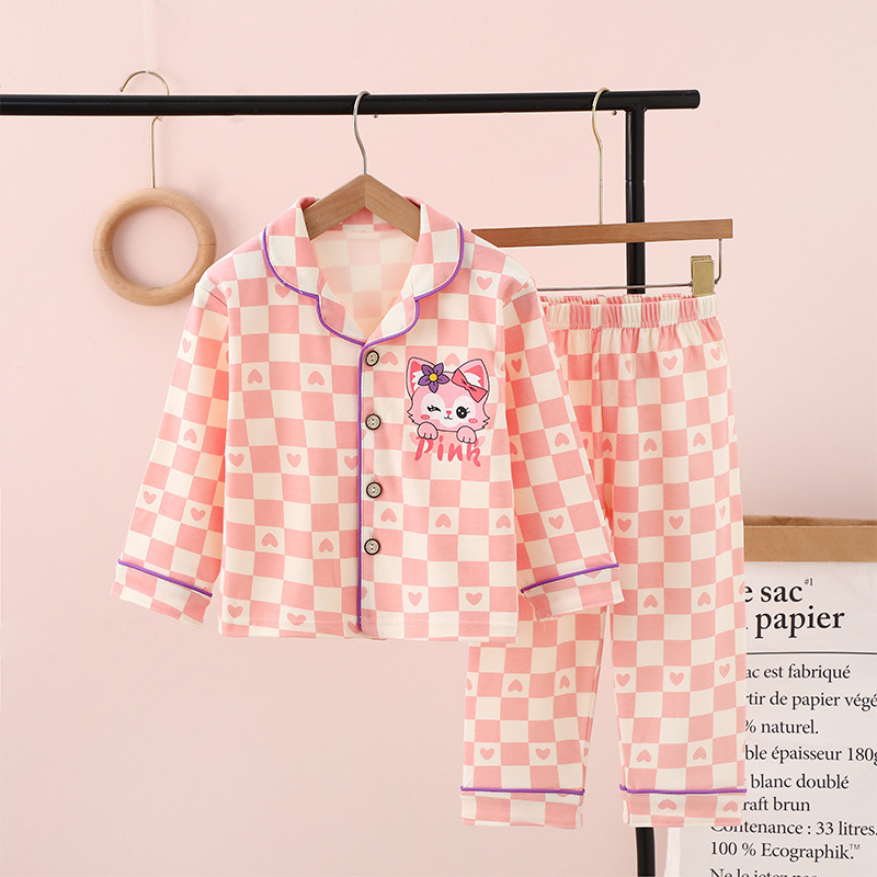 100% 면 어린이 잠옷 소년 소녀 봄과 가을 면화 홈 의류 부드럽고 편안한 잠옷 세트 홈 의류