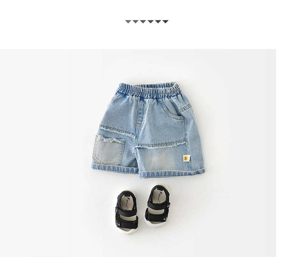 2025 여름 새 소년 포켓 모래 세척 화이트 데님 반바지 아기 아기 중간 허리 바지 52075스토어 가기