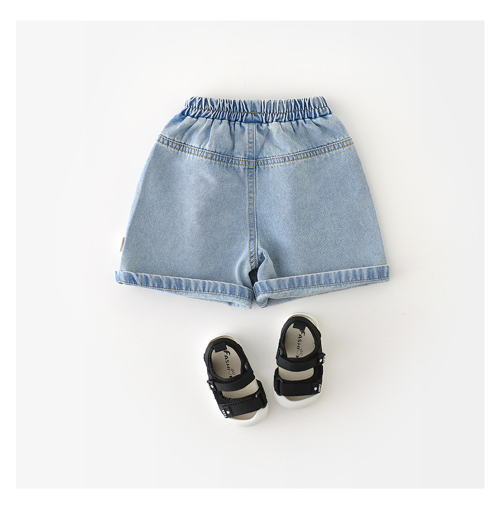 2025 여름 새 소년 포켓 모래 세척 화이트 데님 반바지 아기 아기 중간 허리 바지 52075