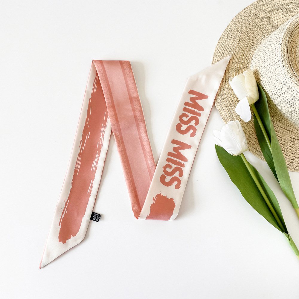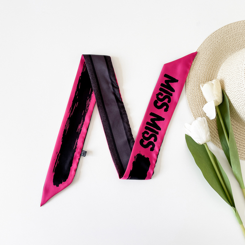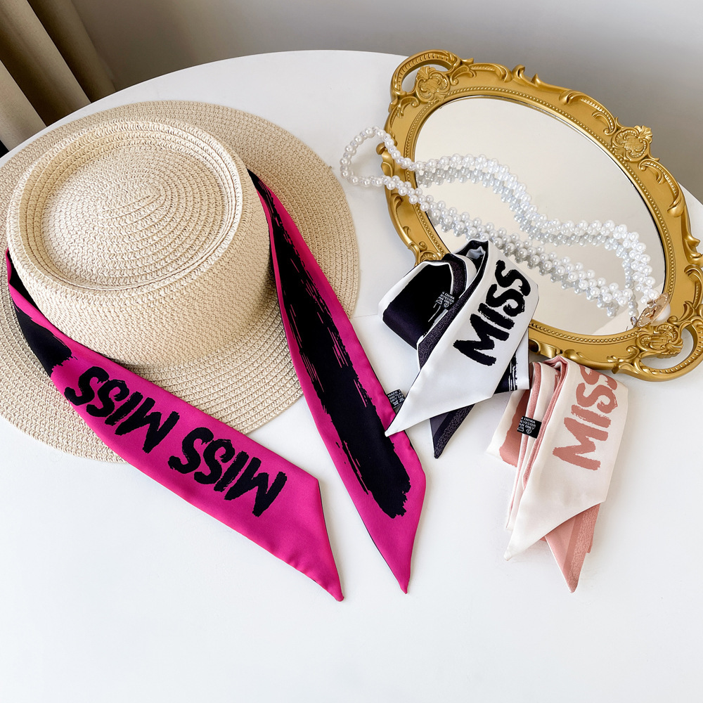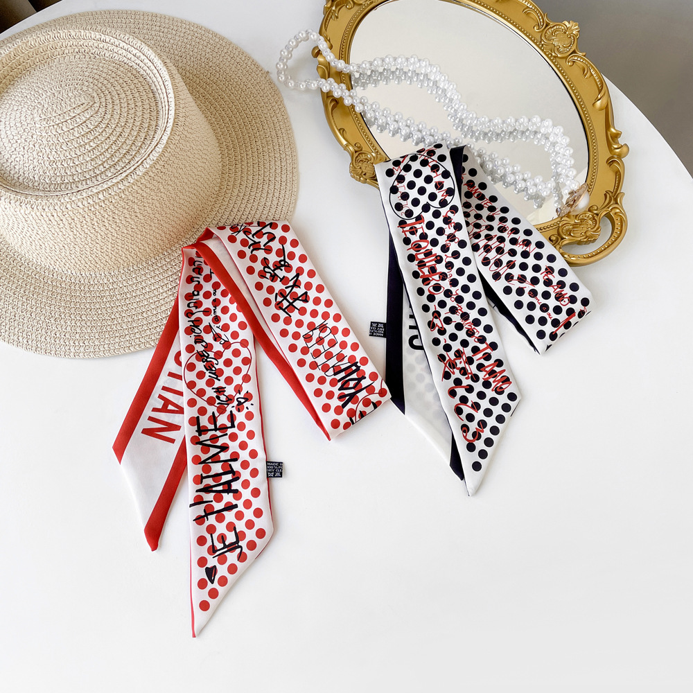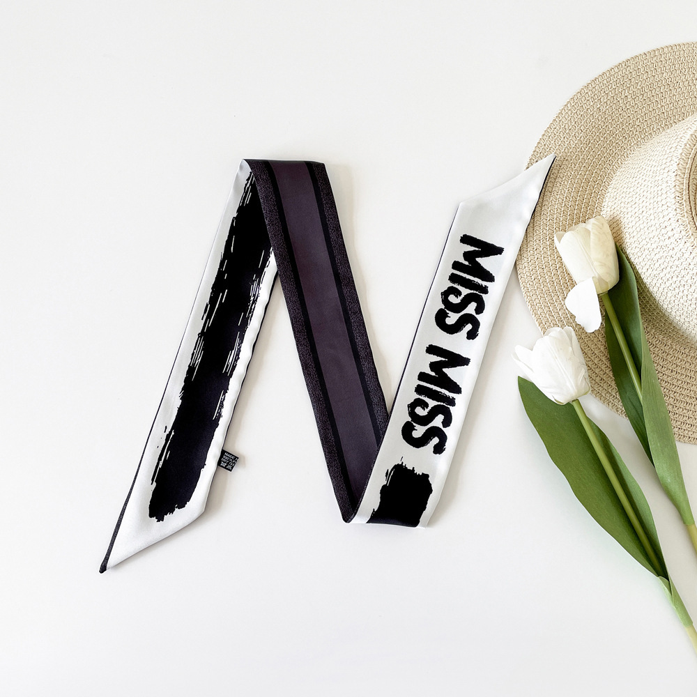 새로운 INS 간단한 편지 작은 리본 더블 레이어 인쇄 twill 여성의 올 매치 유행 긴 스트립 넥타이 가방 리본 도매