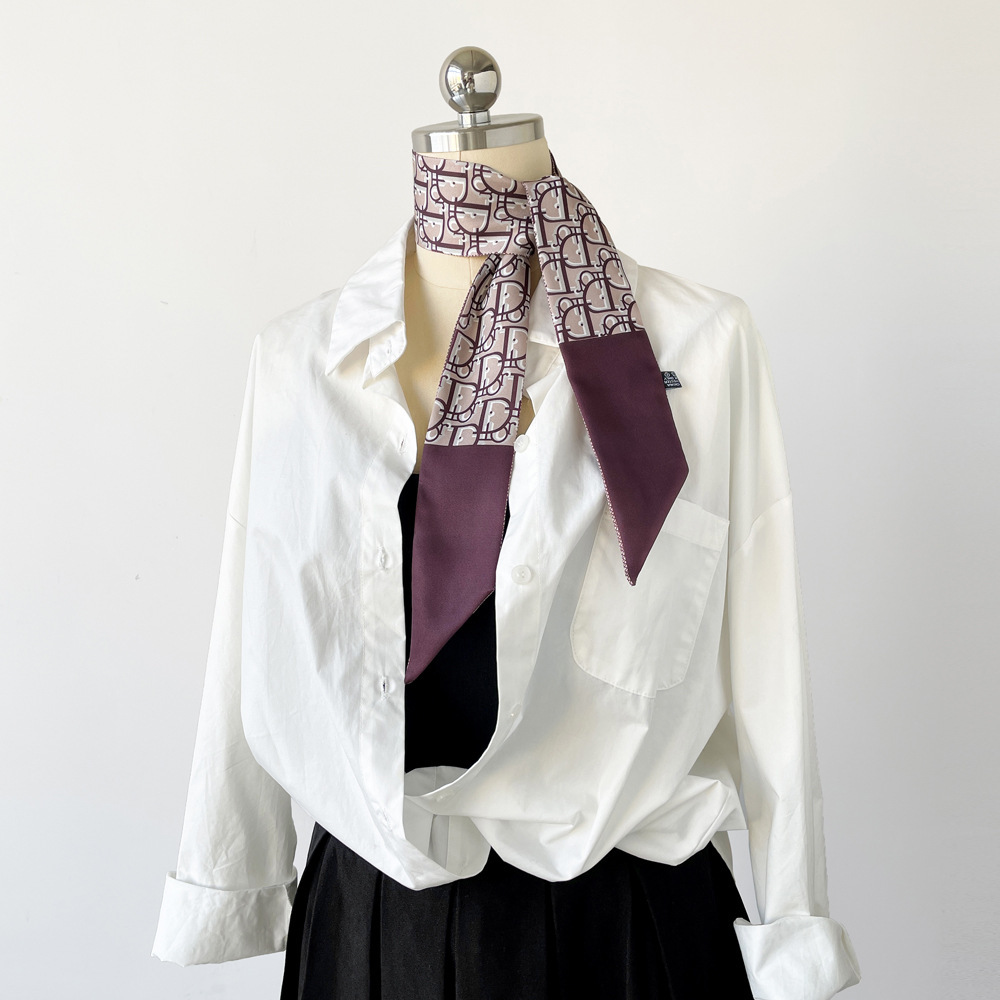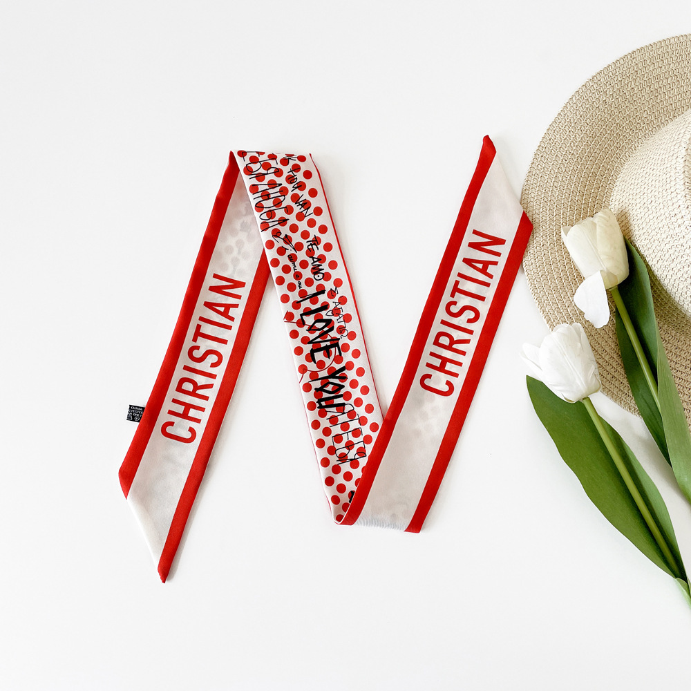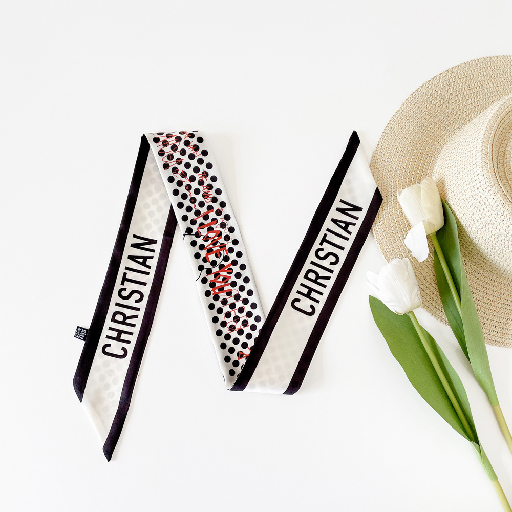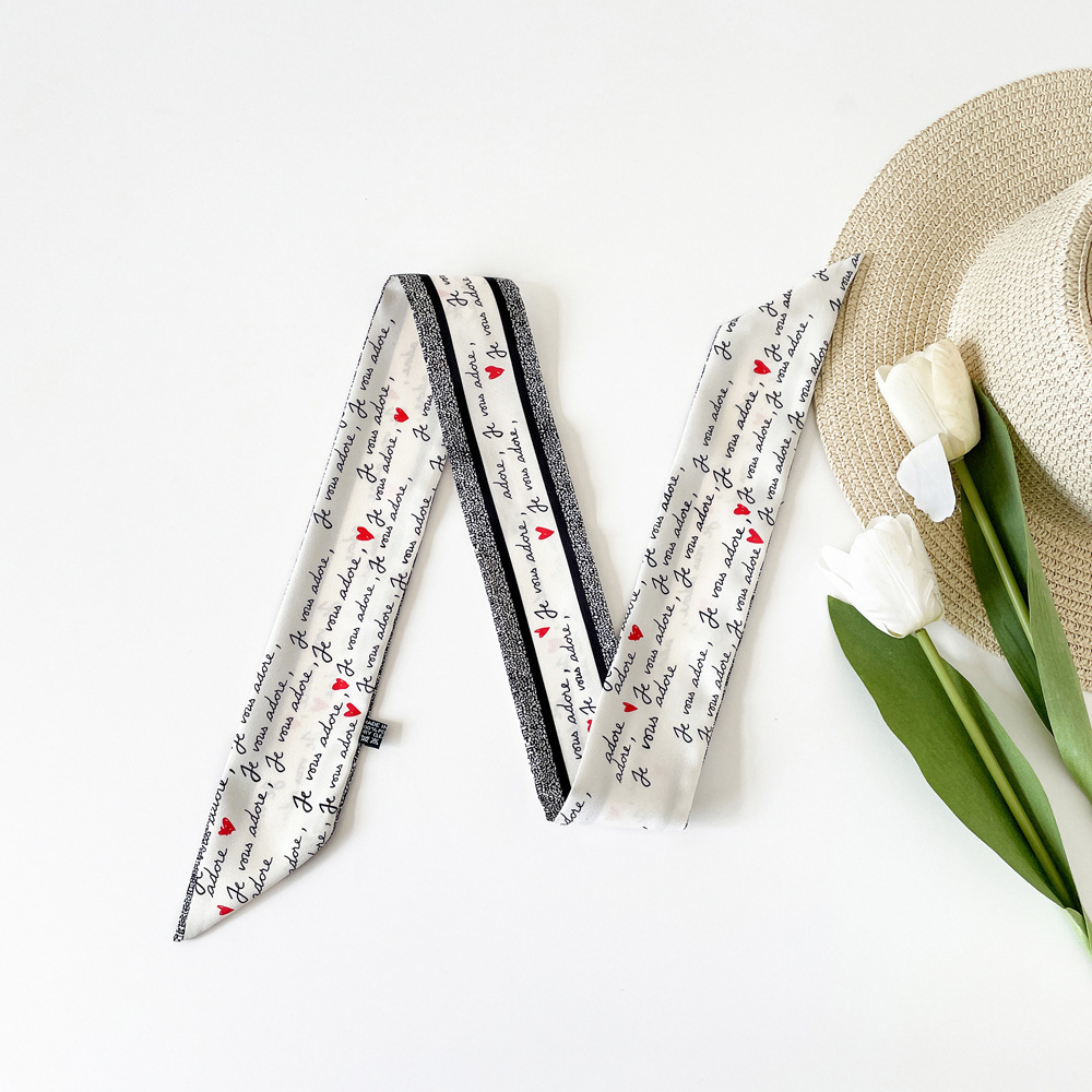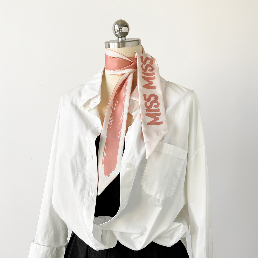 새로운 INS 간단한 편지 작은 리본 더블 레이어 인쇄 twill 여성의 올 매치 유행 긴 스트립 넥타이 가방 리본 도매