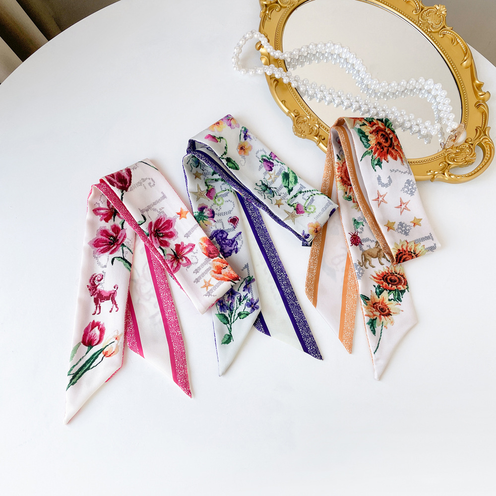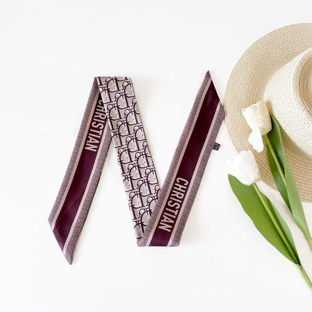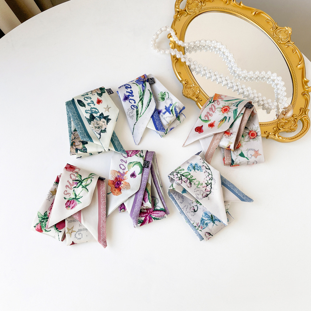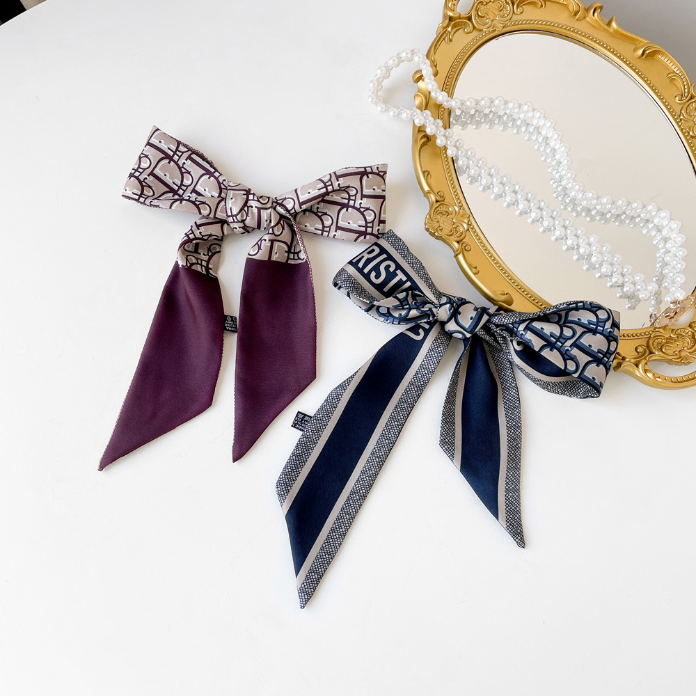 새로운 INS 간단한 편지 작은 리본 더블 레이어 인쇄 twill 여성의 올 매치 유행 긴 스트립 넥타이 가방 리본 도매