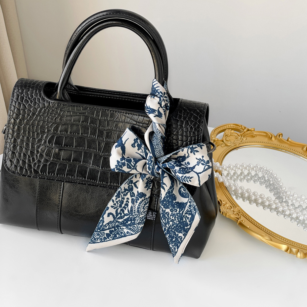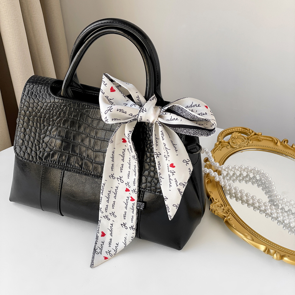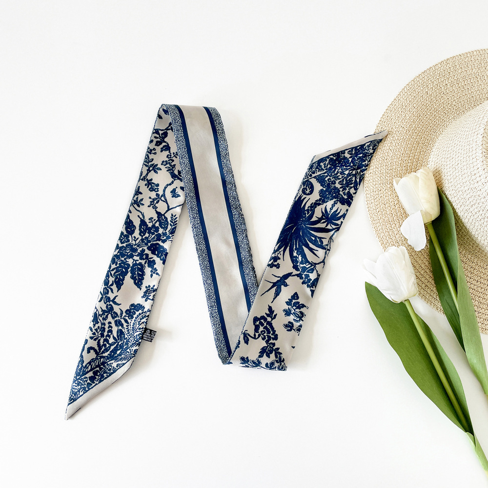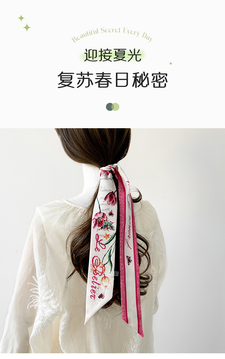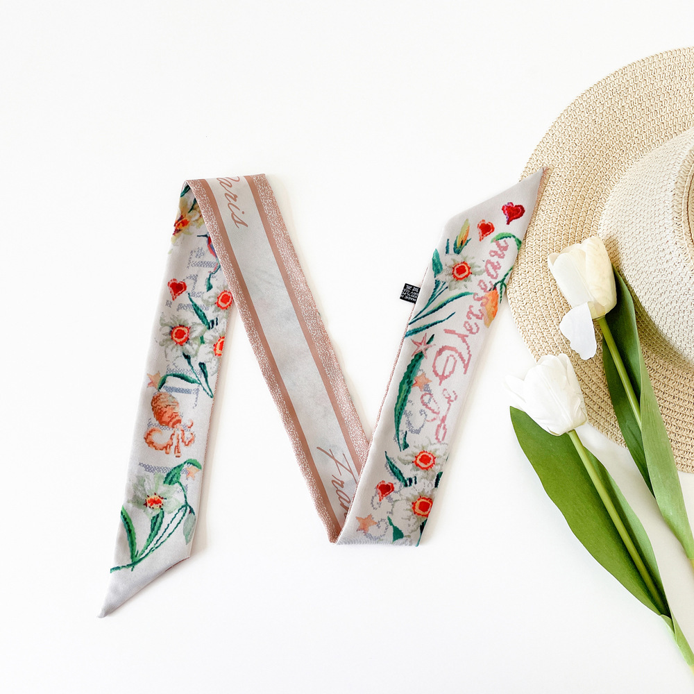 새로운 INS 간단한 편지 작은 리본 더블 레이어 인쇄 twill 여성의 올 매치 유행 긴 스트립 넥타이 가방 리본 도매