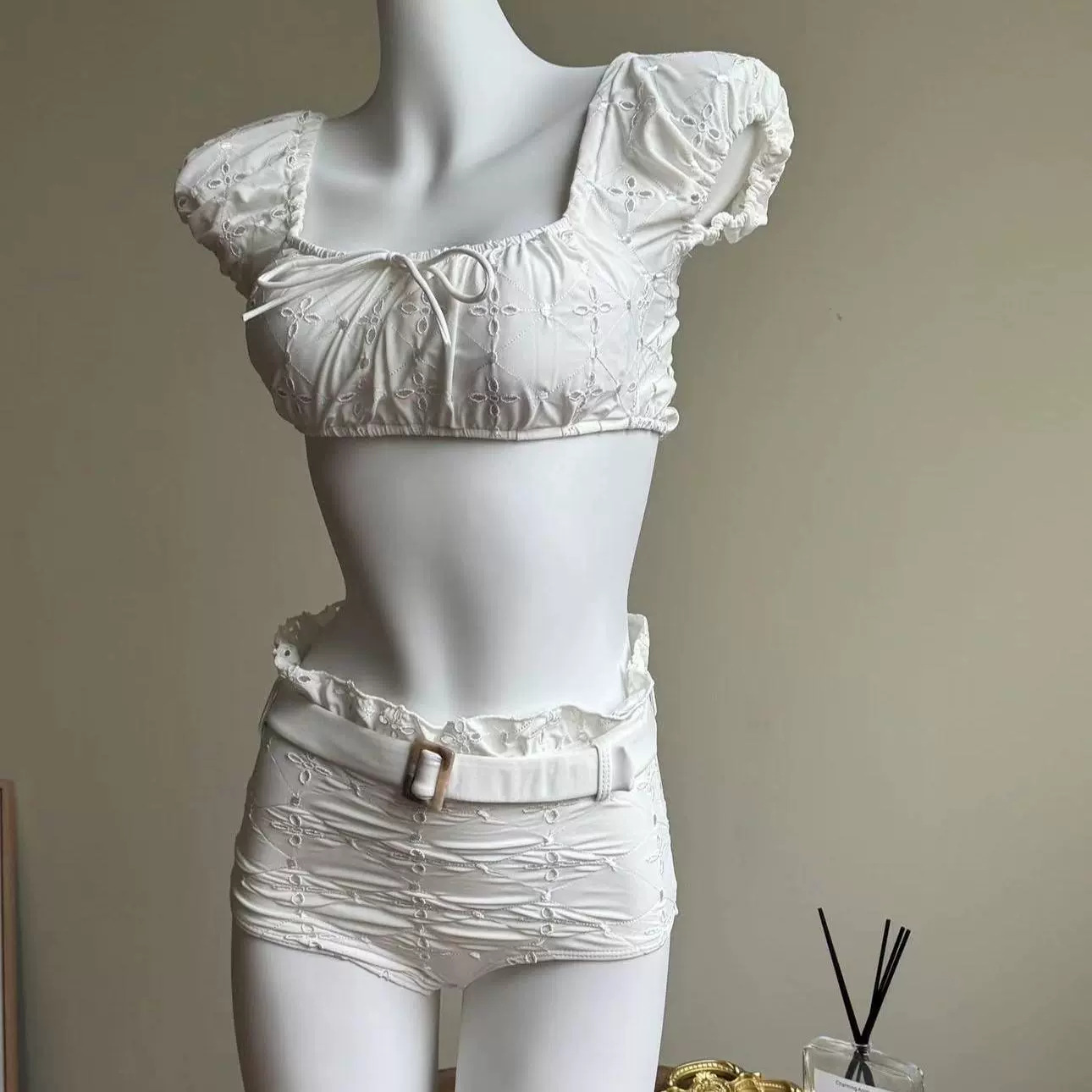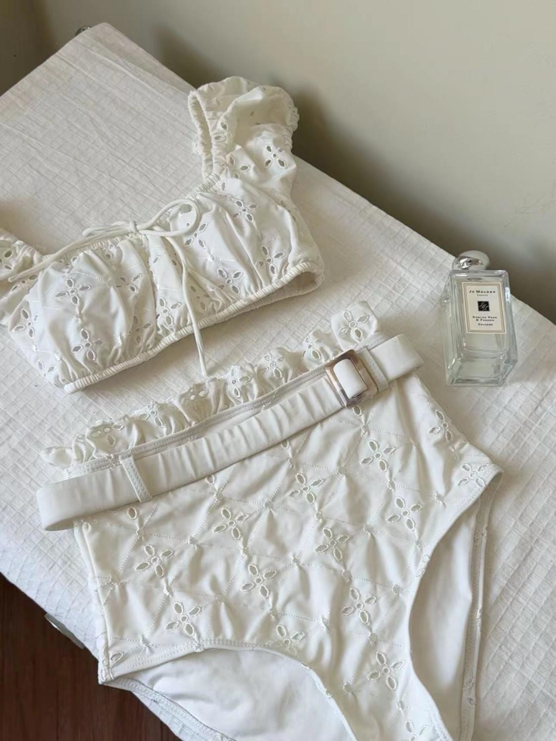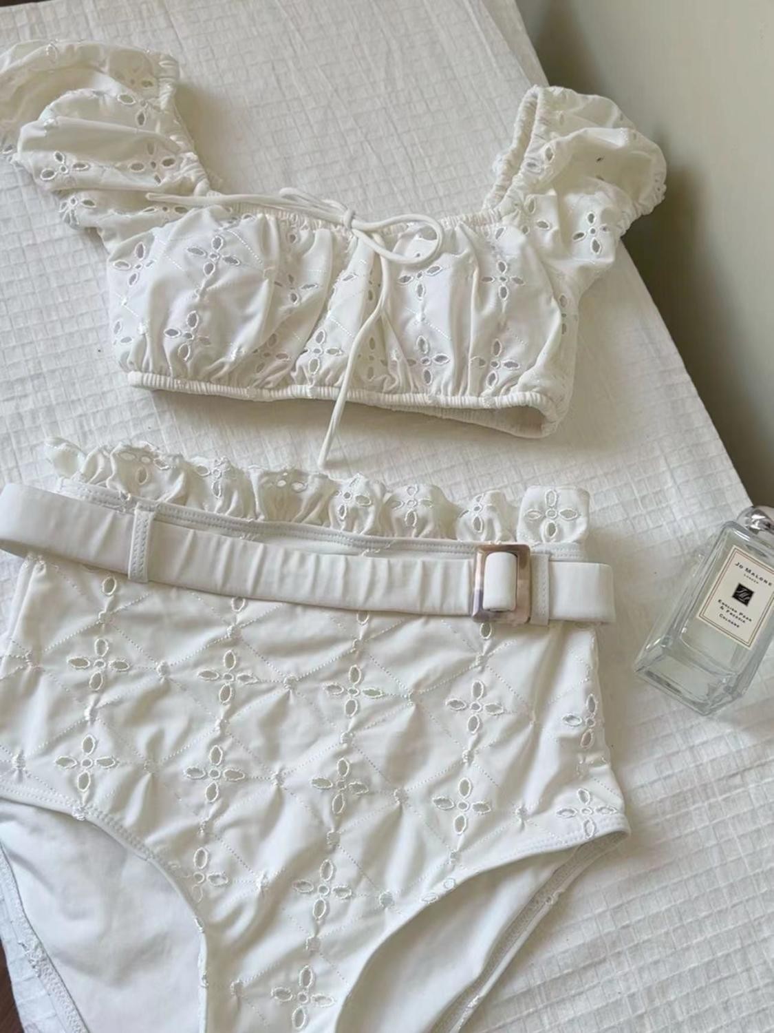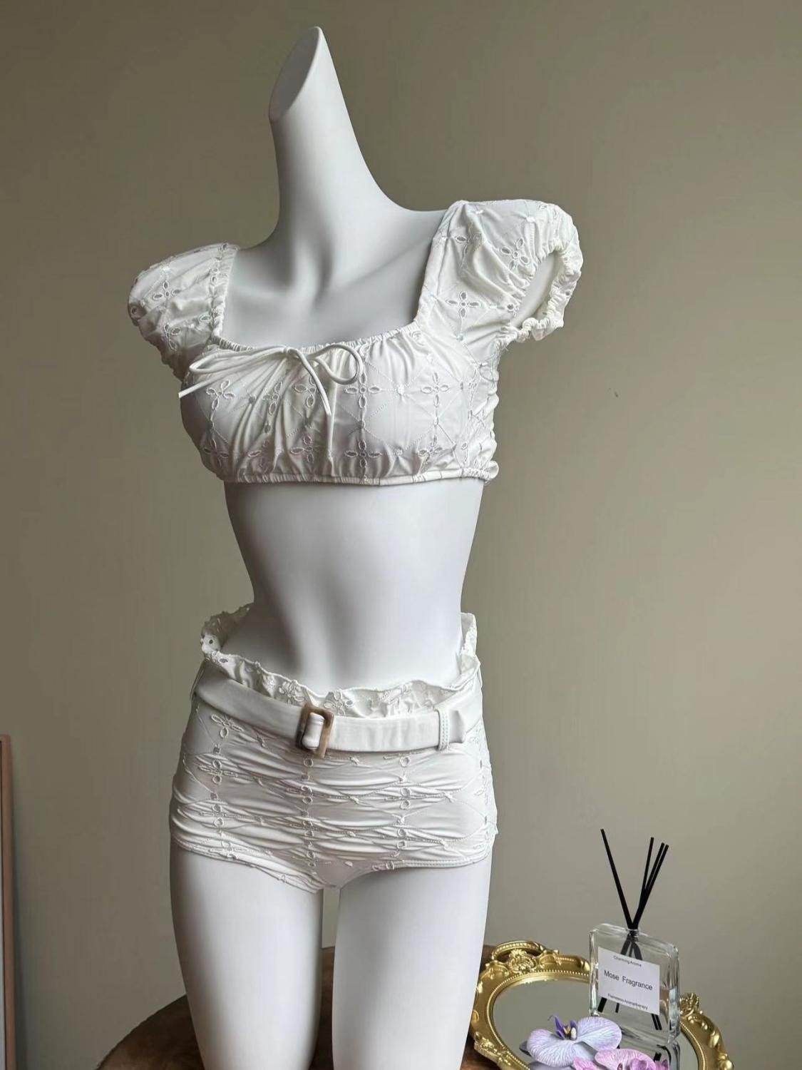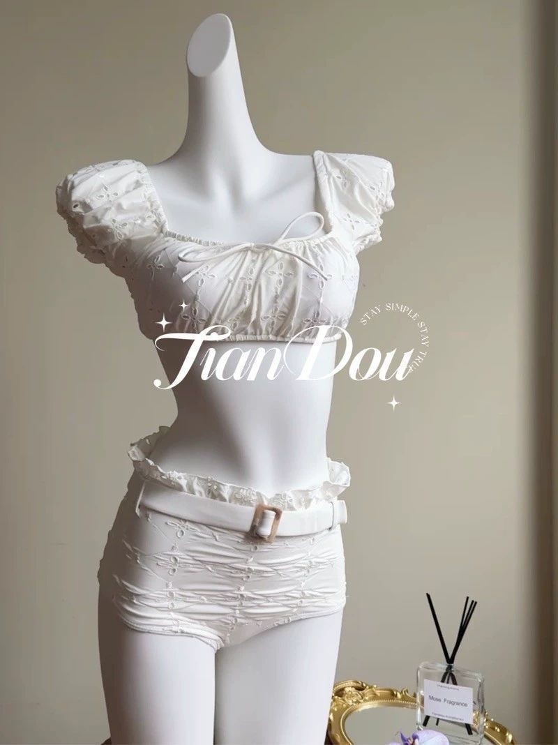 [로마 휴일] 화이트 레이스 순수한 욕망 높은 질감 분할 수영복 휴일 온천 비치 비키니 여성