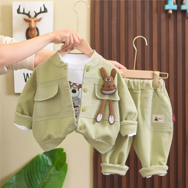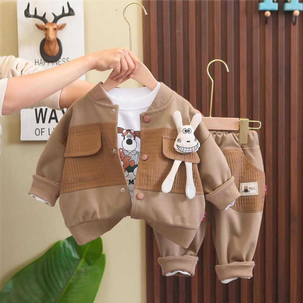 한 팬 소년의 봄 옷 세트 서양식 성격 유행 아기의 봄과 가을 야구 옷 아기 어린이 3 피스 세트