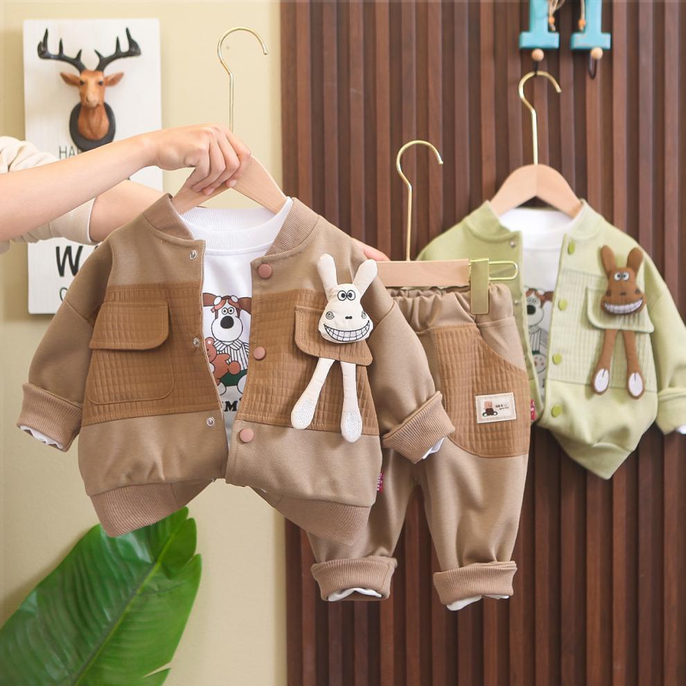 한 팬 소년의 봄 옷 세트 서양식 성격 유행 아기의 봄과 가을 야구 옷 아기 어린이 3 피스 세트스토어 가기