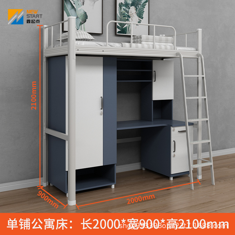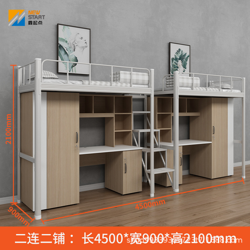 공장 직접 공급 재고 상하 이층 대학생 기숙사 철제 프레임 침대 아파트 침대 기숙사 침대 하부 테이블 조합 침대