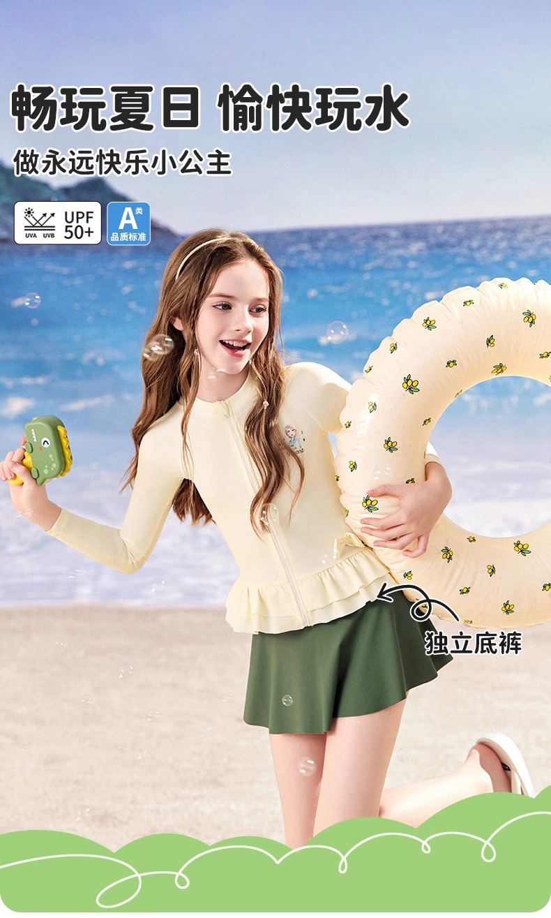 디즈니 어린이 수영복 소녀 2025 새로운 소녀 공주 스커트 분할 수영복 큰 키즈 수영복