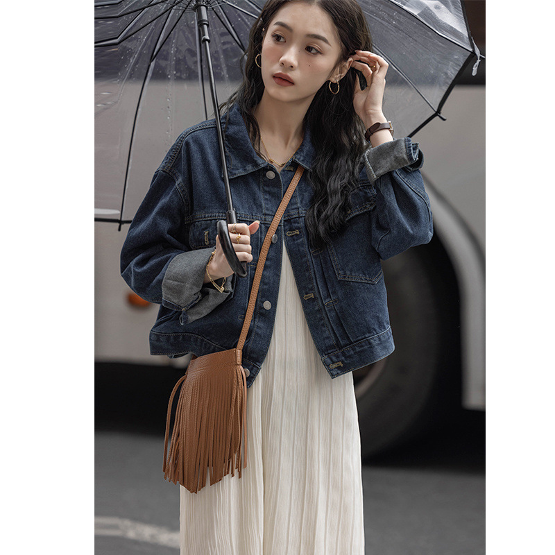 홍콩 스타일 블루 데님 코트 여자 2025 시즌 새로운 캐주얼 한국식 루즈 트렌디 탑