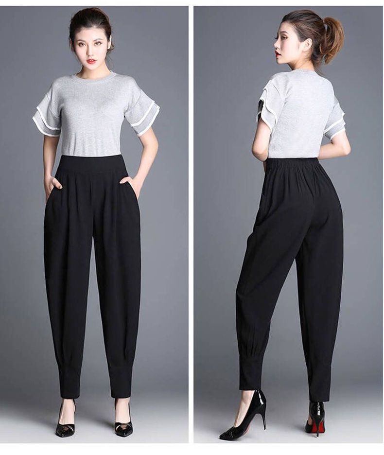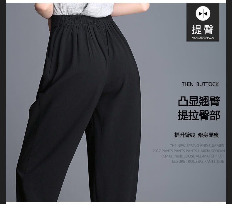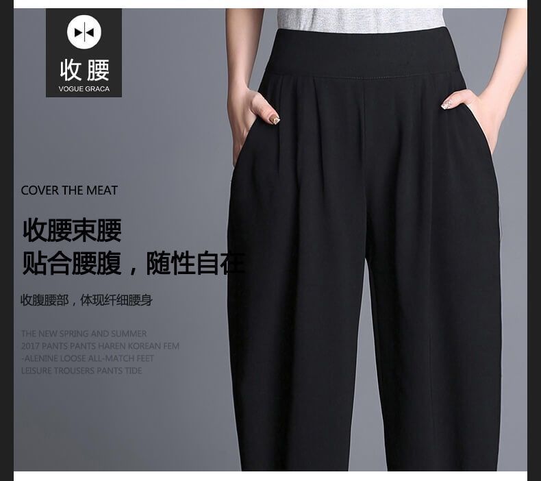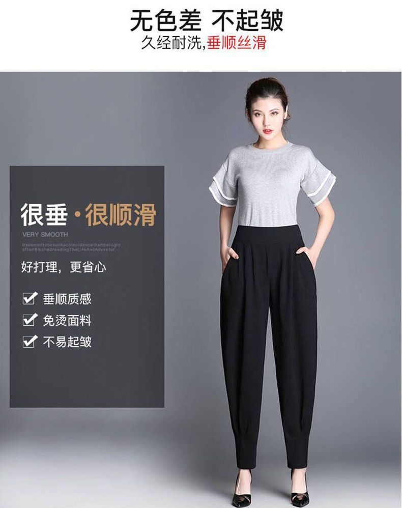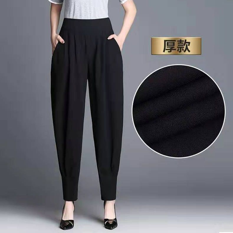 하렘 팬츠 여성용 봄 여름 신상 루즈핏 하이웨이스트 신축성 큰 사이즈 뚱뚱한 여성용 바지 블랙 슬림핏 캐주얼 당근형 아이스 실크스토어 가기
