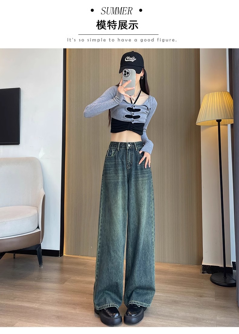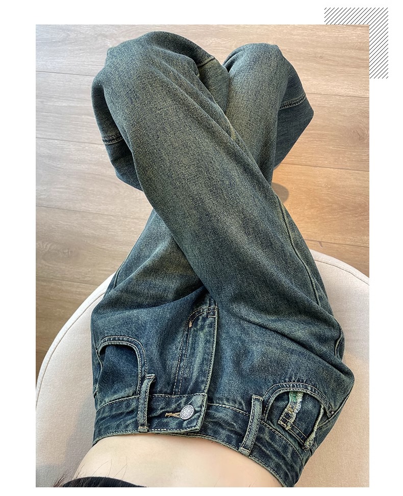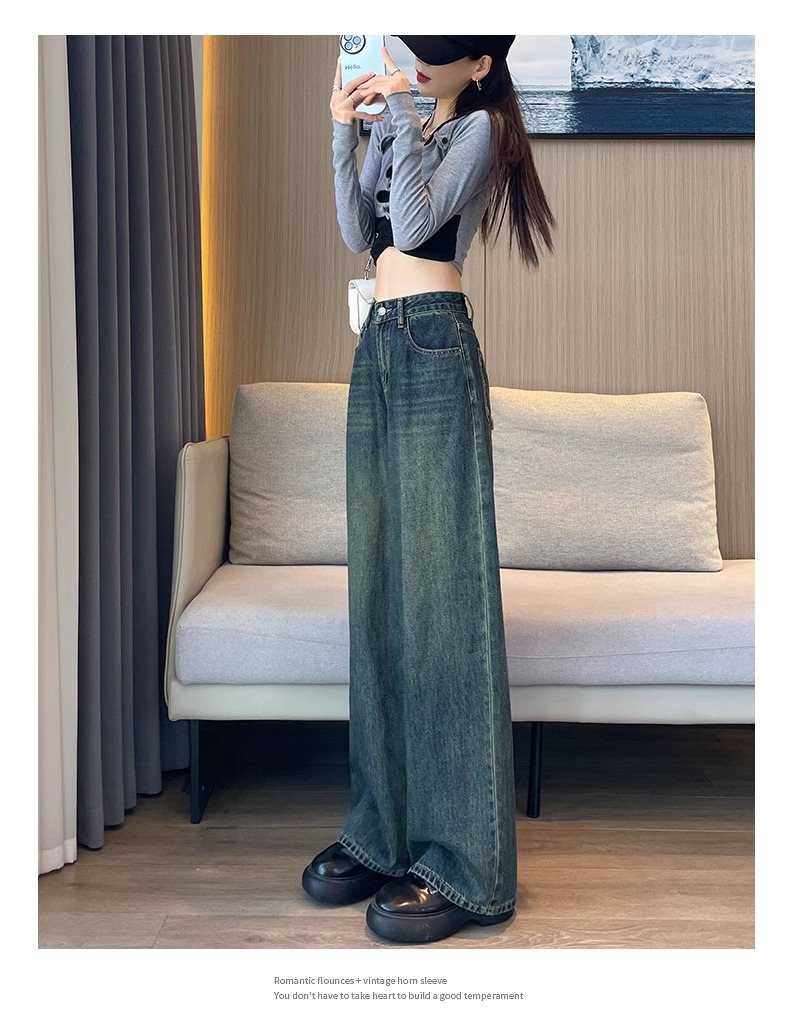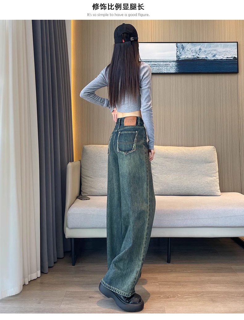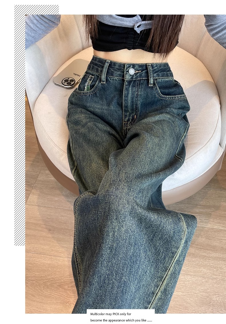 빈티지 와이드 레그 청바지 여성의 2025 새로운 디자인 센스 인쇄 컬링 느슨한 스트레이트 바지 패션 바지스토어 가기