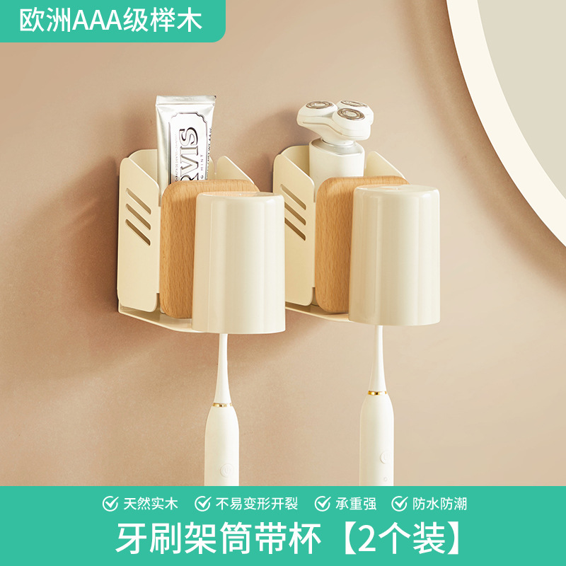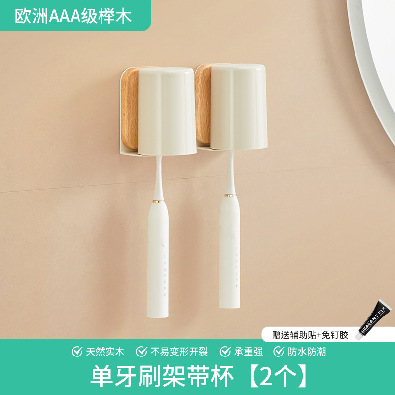 • 너도밤나무 2인용 칫솔꽂이 [컵 포함]