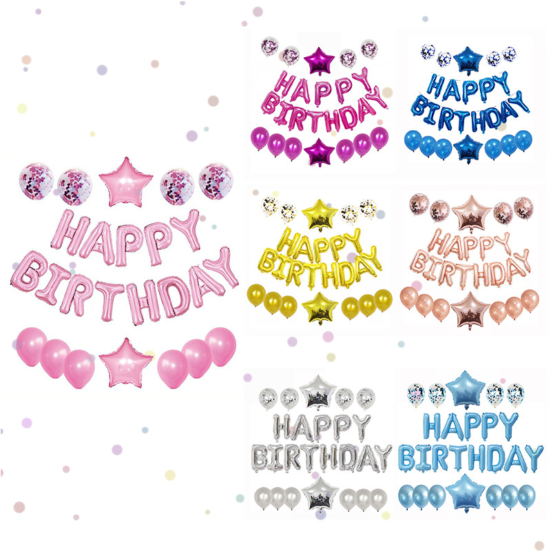 국경 행복 생일 생일 축하 25pcs 라텍스 풍선 로맨틱 테마 세트 장식 장면 레이아웃스토어 가기