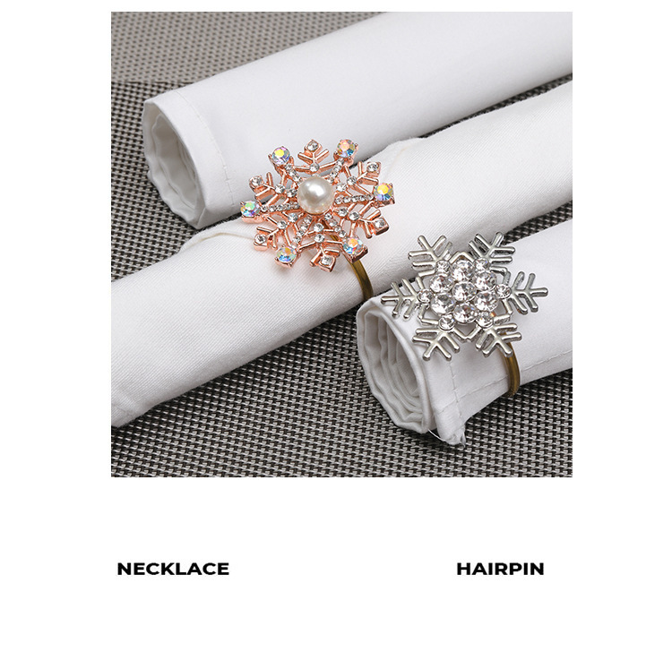 34 # 크리스마스 의식 금속 냅킨 링 눈송이 냅킨 버클