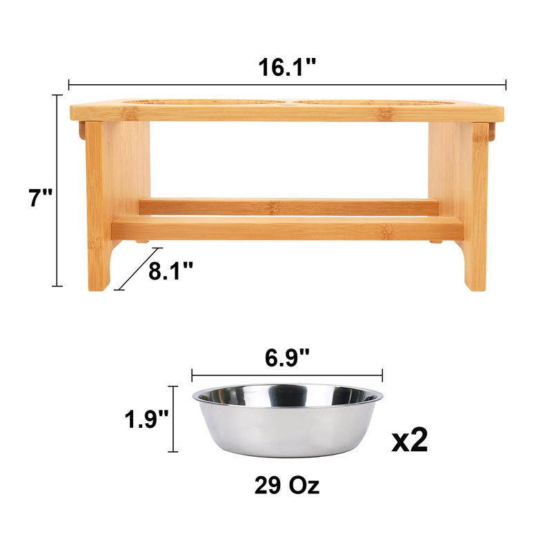 나무 애완 동물 고양이 그릇 랙 더블 그릇 애완 동물 피더 조정 가능한 애완 동물 먹이 랙 애완 동물 마시는 물 공급 테이블스토어 가기