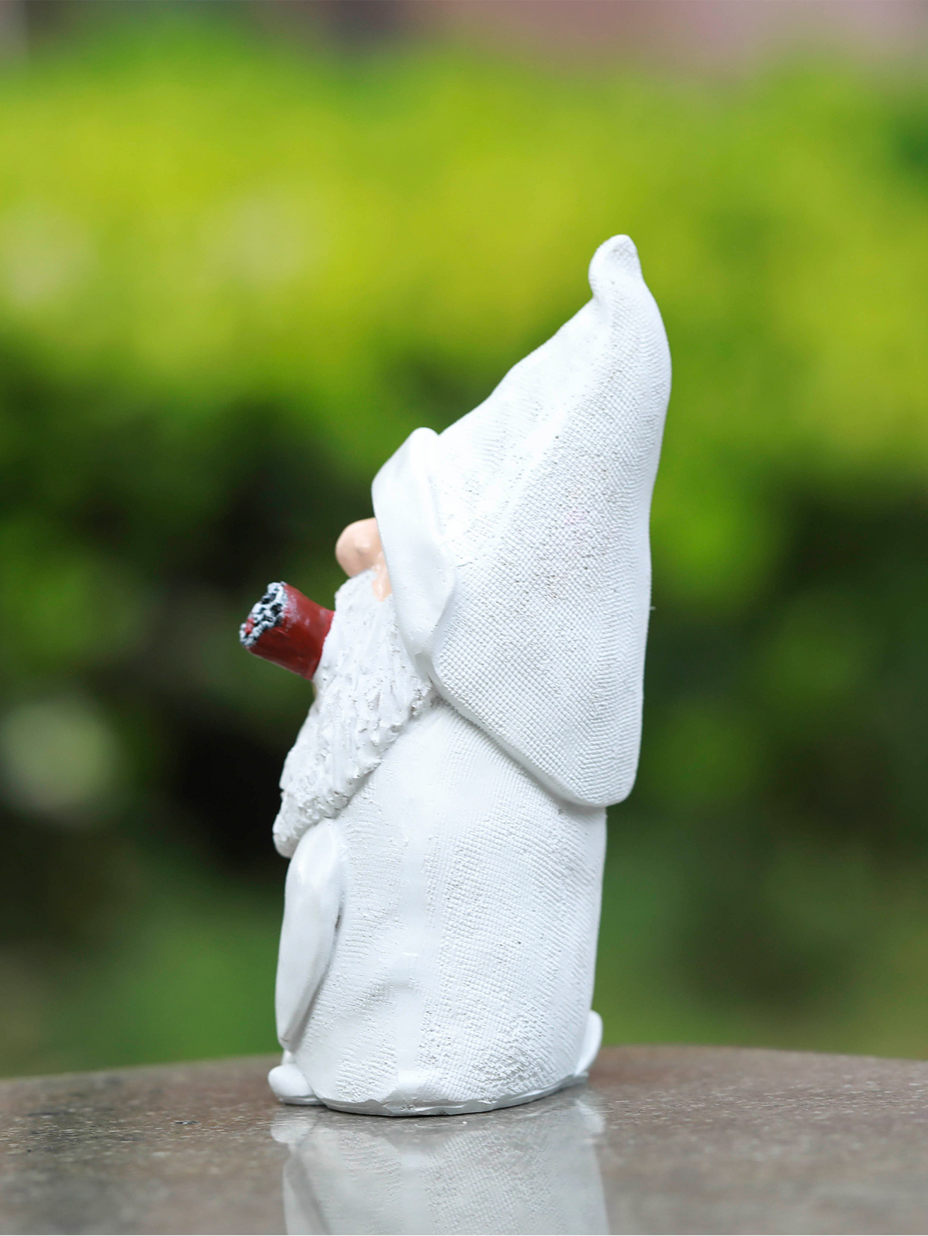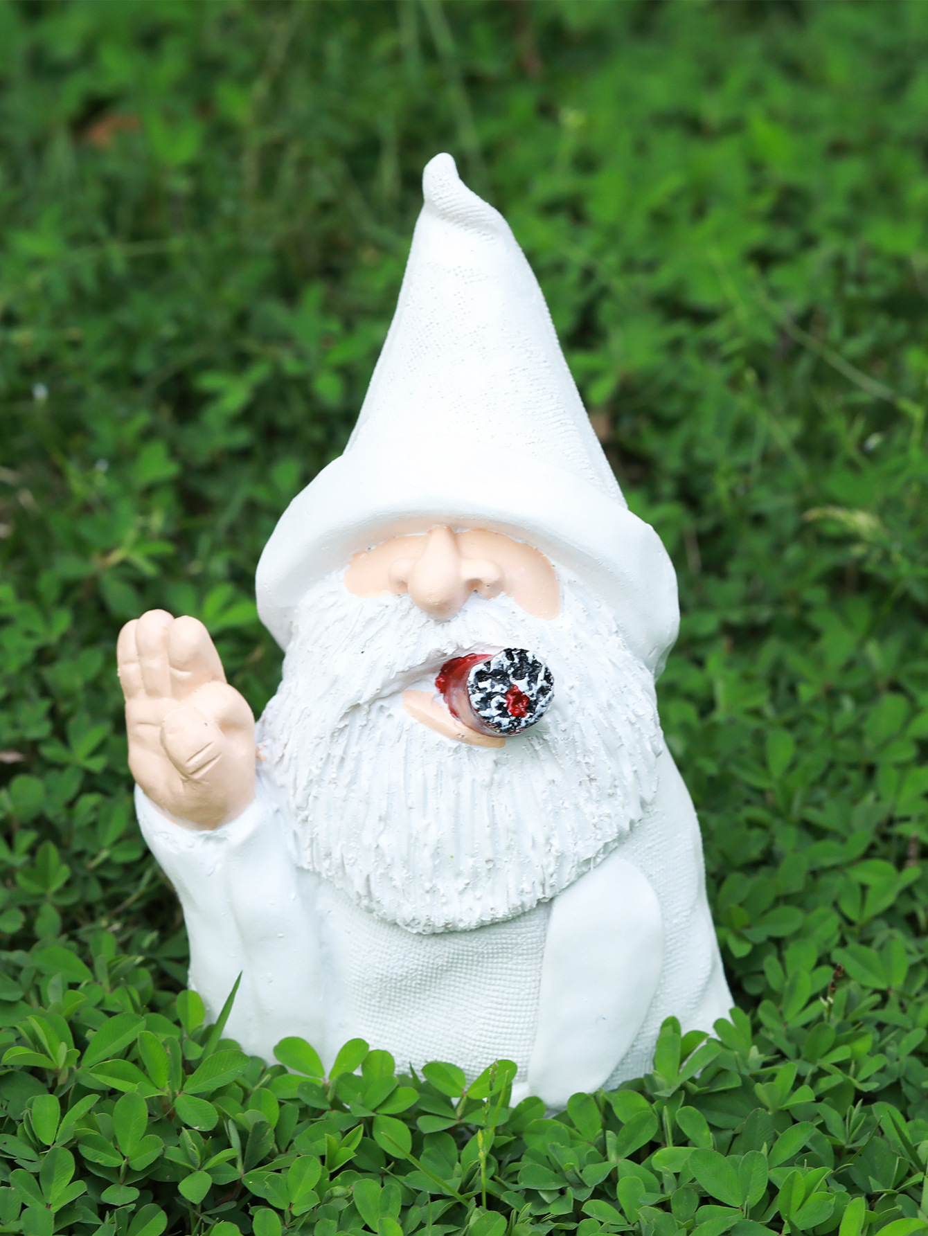 국경 간 정원 드워프 장식품 수지 공예 흰색 로브 흡연 중간 손가락 정원 풍경 장식