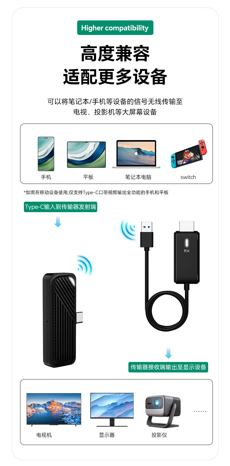 새로운 포인트 투 포인트 엔터프라이즈 스크린 프로젝터 같은 화면 컴퓨터 HDMI HD 전송 TV 프로젝터 컴퓨터스토어 가기