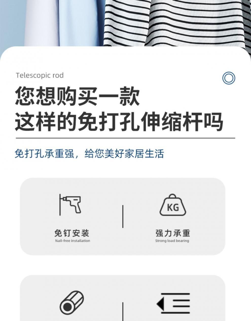 펀치 프리 텔레스코픽 로드 의류 건조 막대 발코니 건조 랙 옷장 브래지어 커튼 막대 욕실 옷 교수형 샤워 커튼 막대