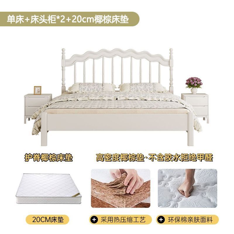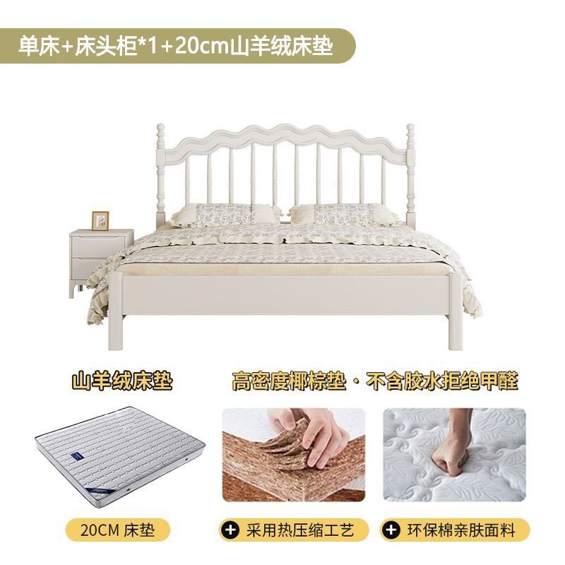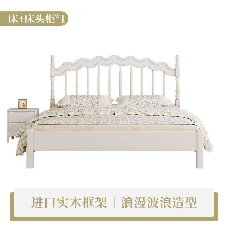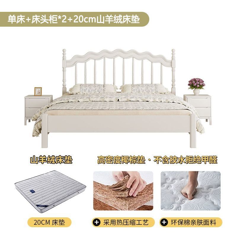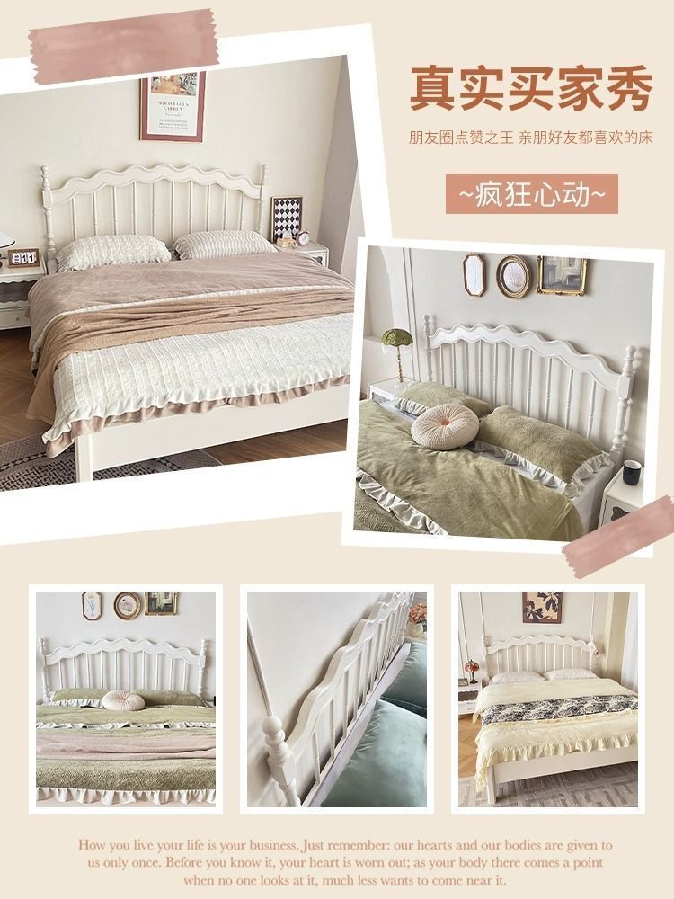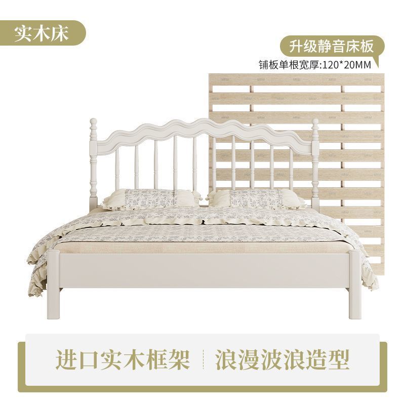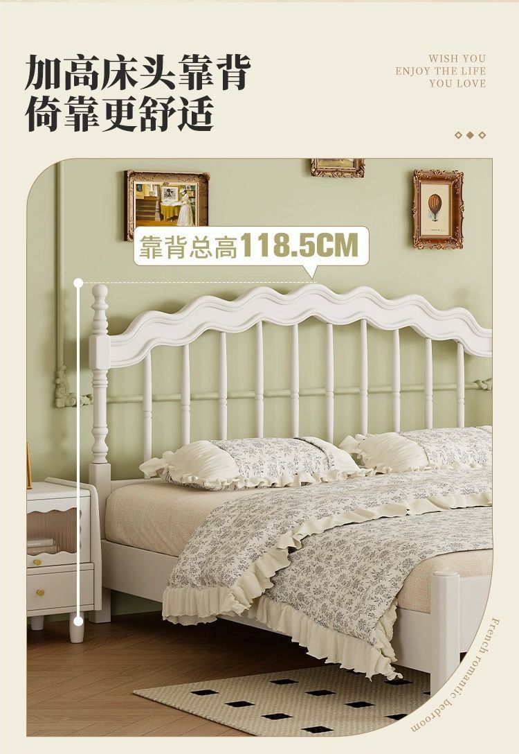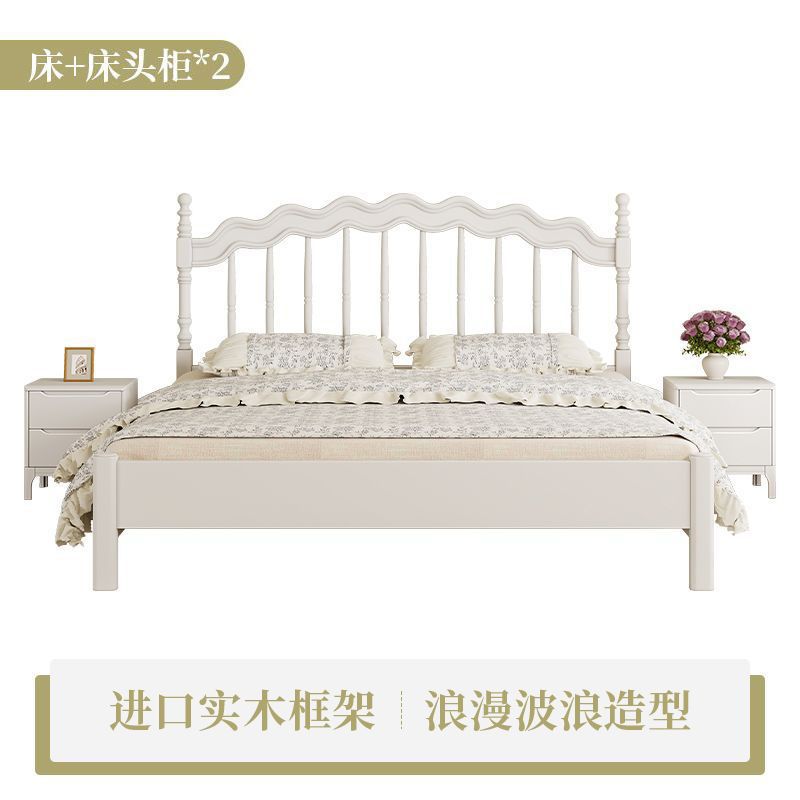 프랑스 단단한 나무 침대 흰색 윈저 침대 크림 바람 1.8 미터 1.5m 단일 복고풍 미국 공주 침대 작은 아파트스토어 가기