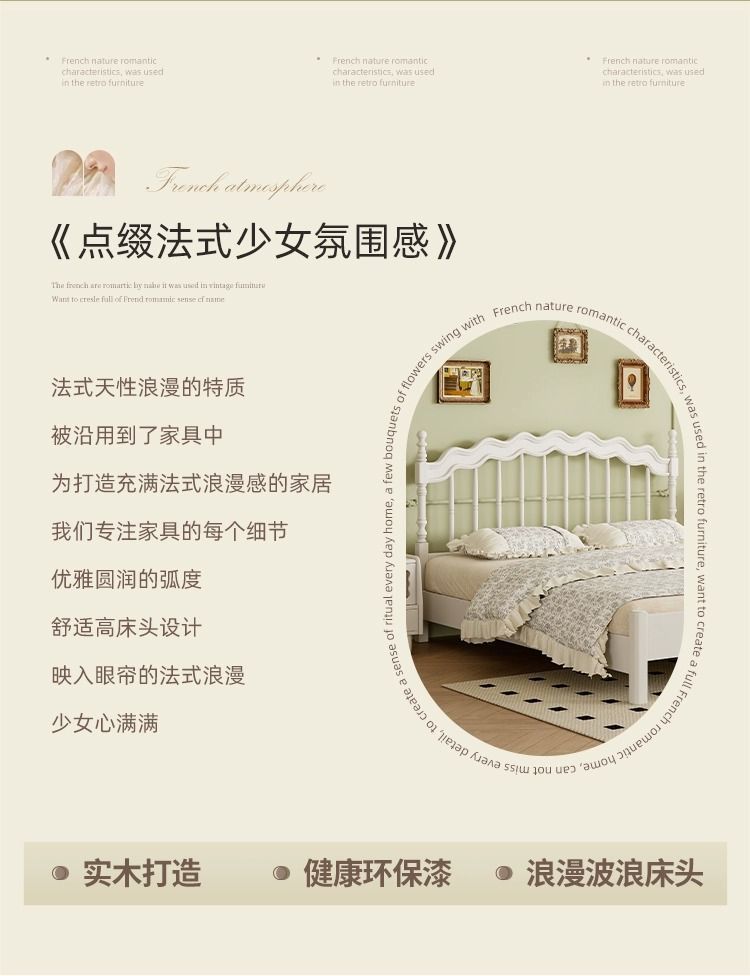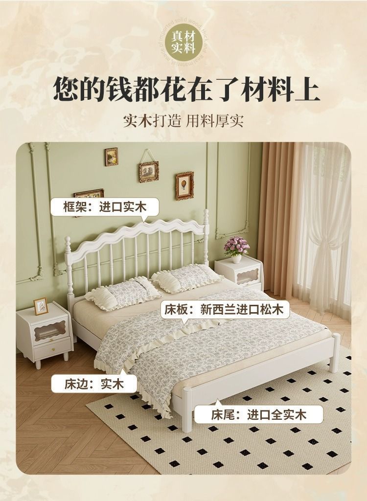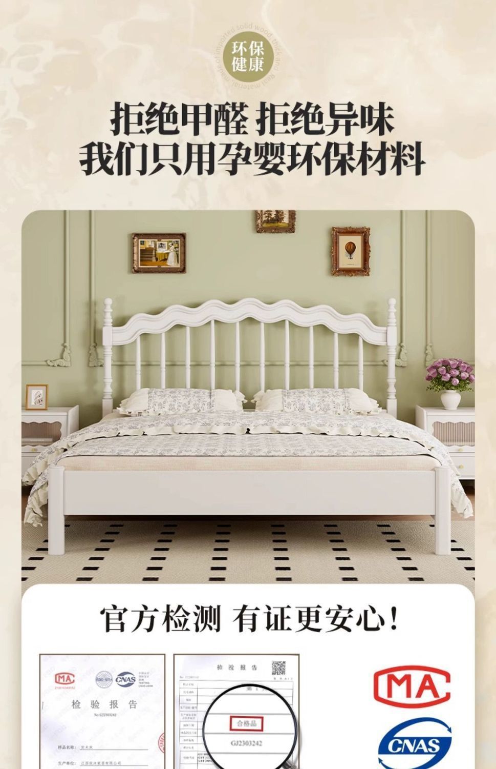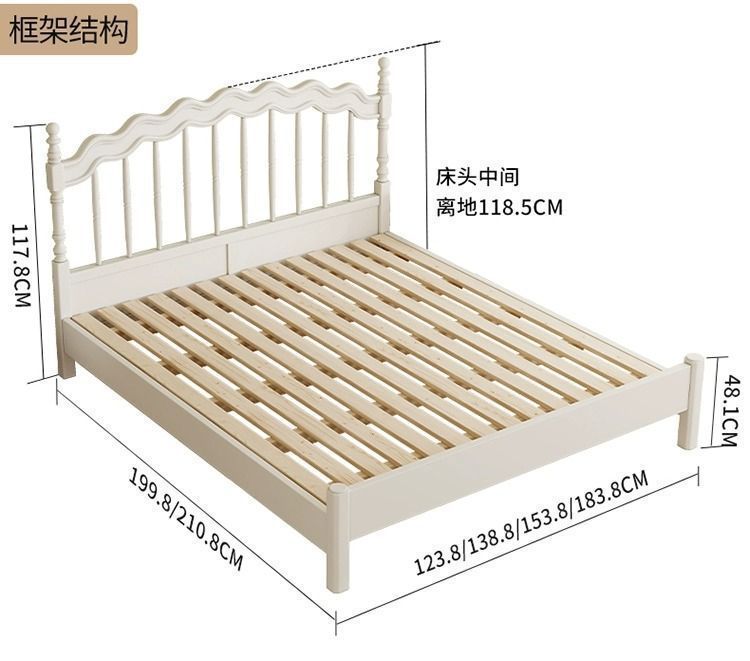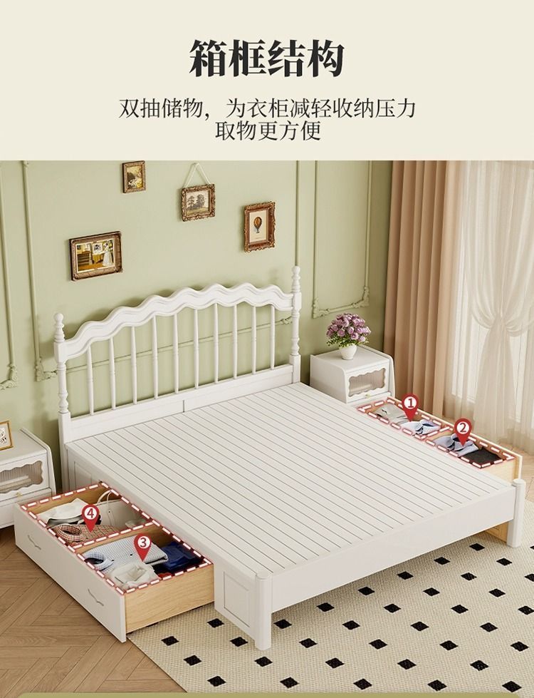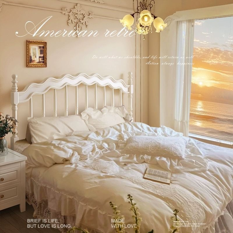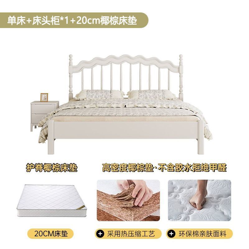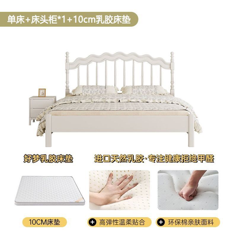 프랑스 단단한 나무 침대 흰색 윈저 침대 크림 바람 1.8 미터 1.5m 단일 복고풍 미국 공주 침대 작은 아파트스토어 가기