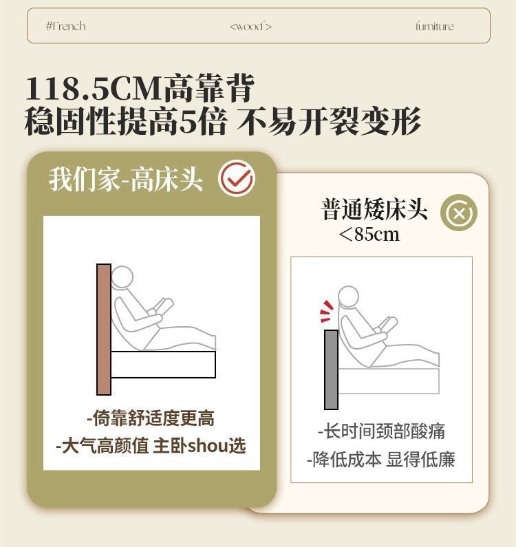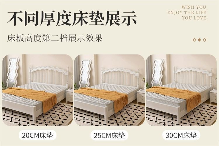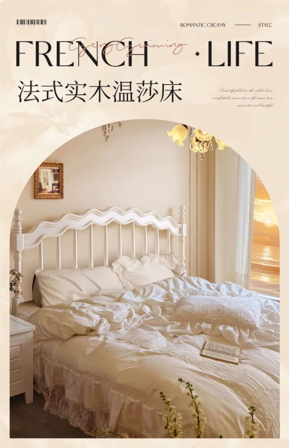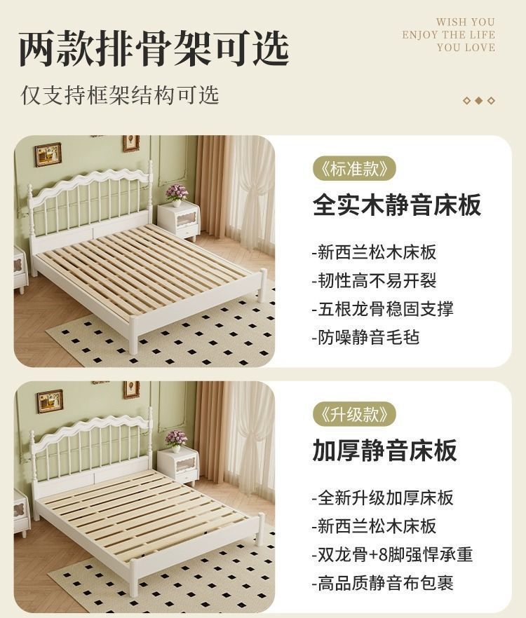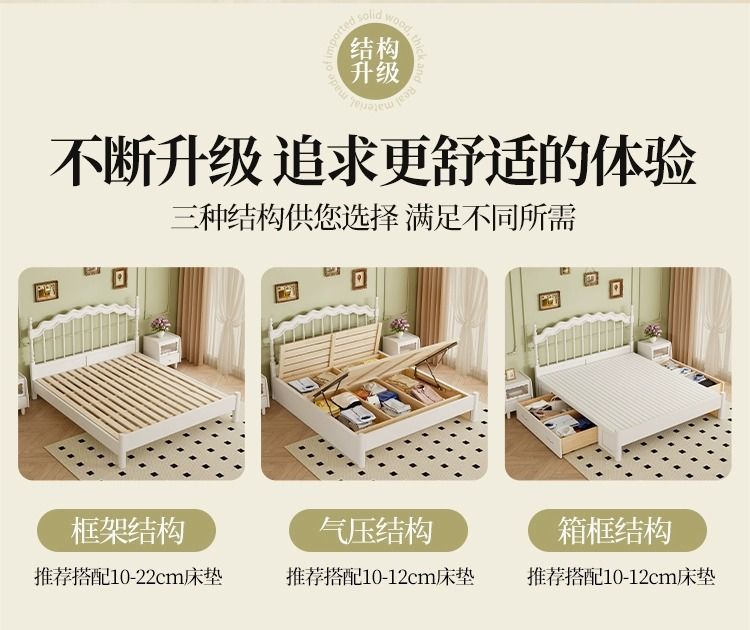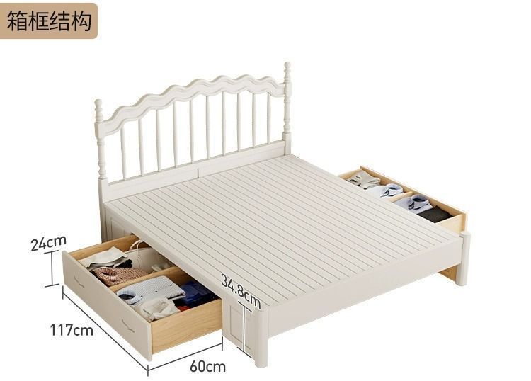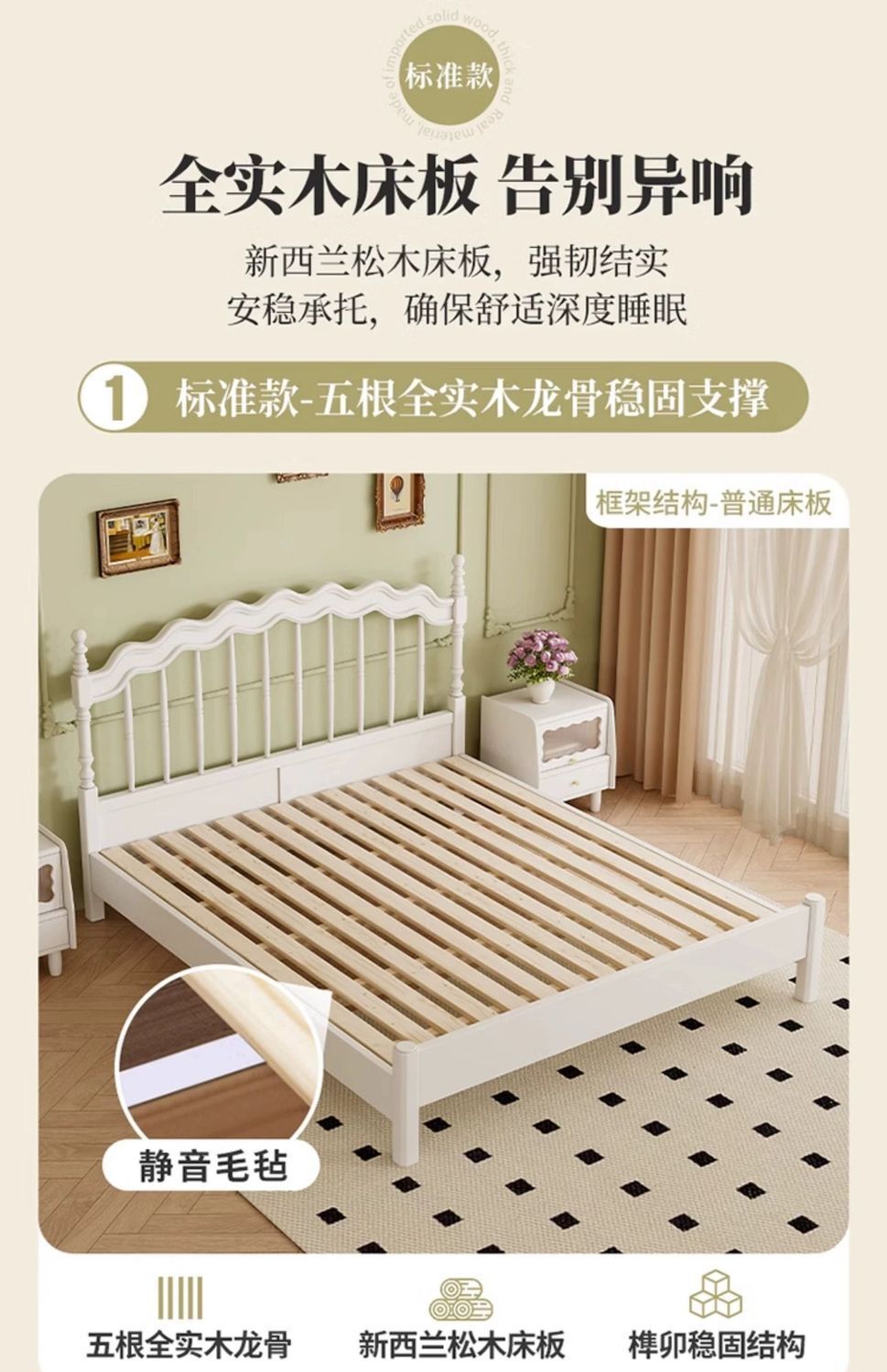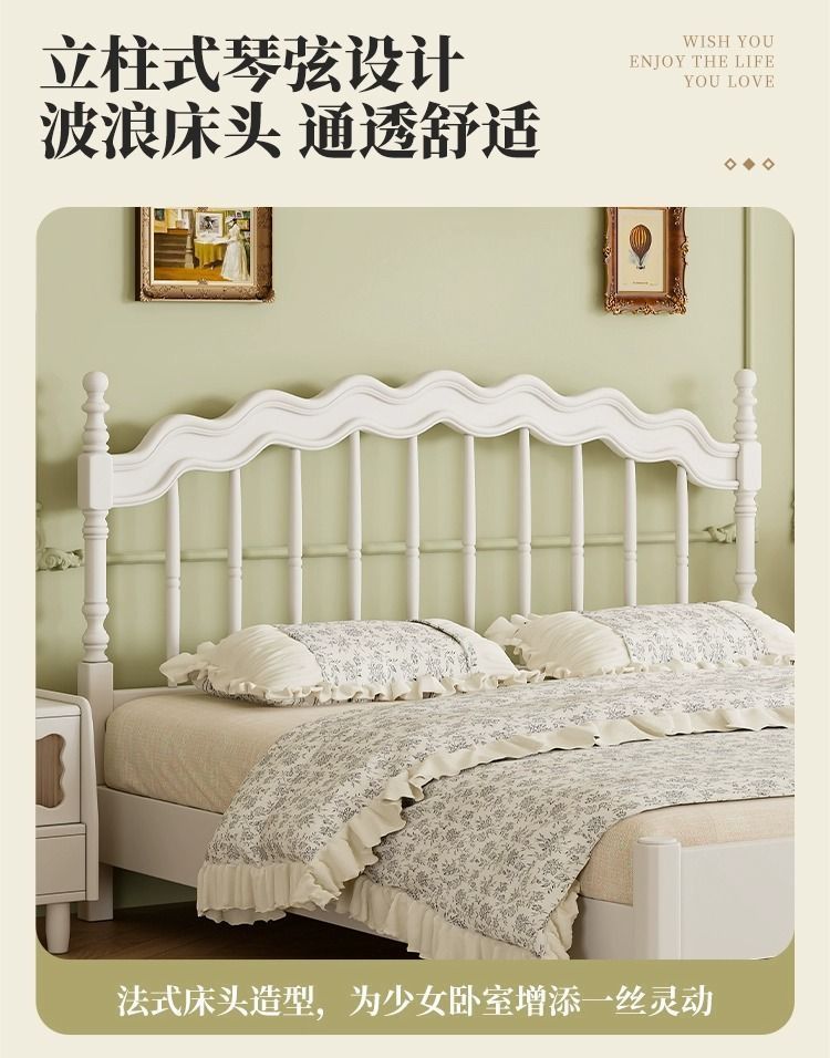 프랑스 단단한 나무 침대 흰색 윈저 침대 크림 바람 1.8 미터 1.5m 단일 복고풍 미국 공주 침대 작은 아파트스토어 가기