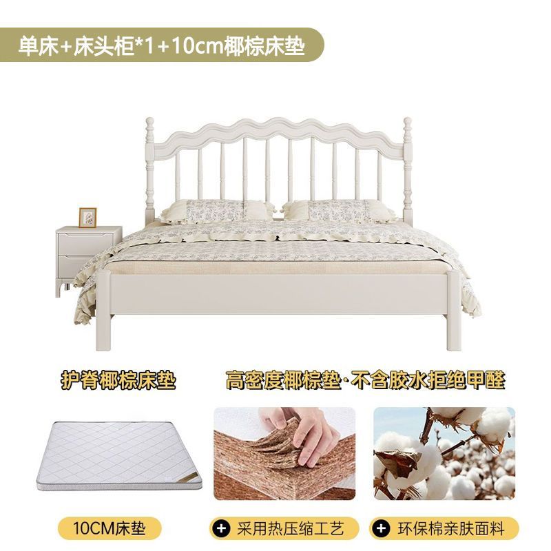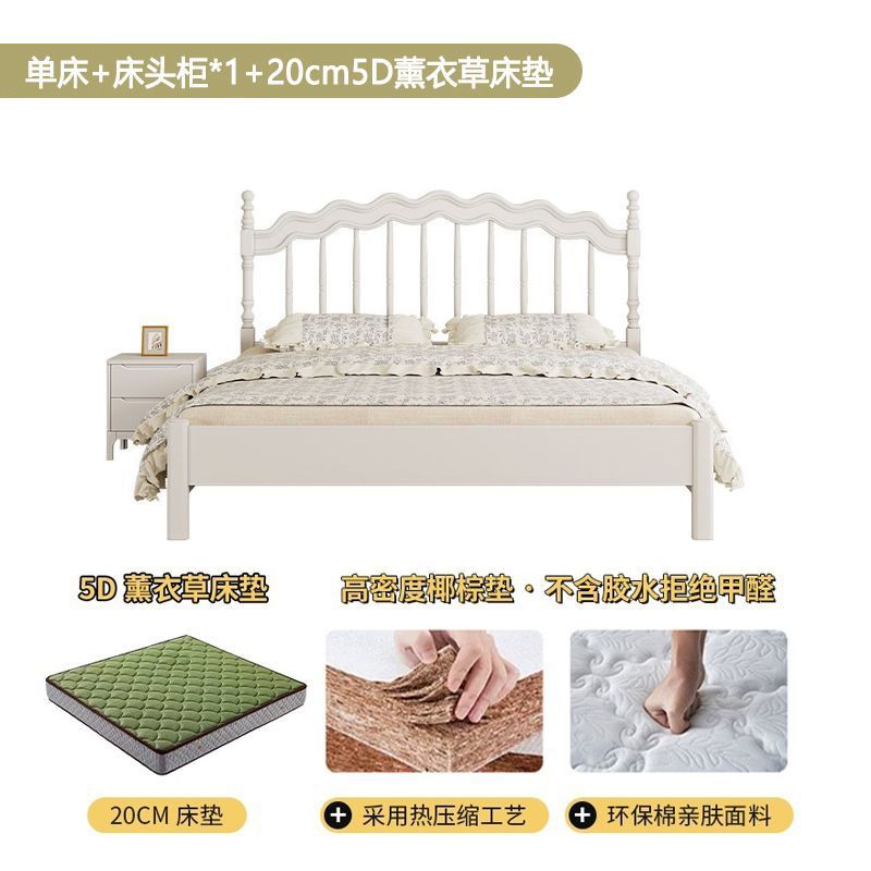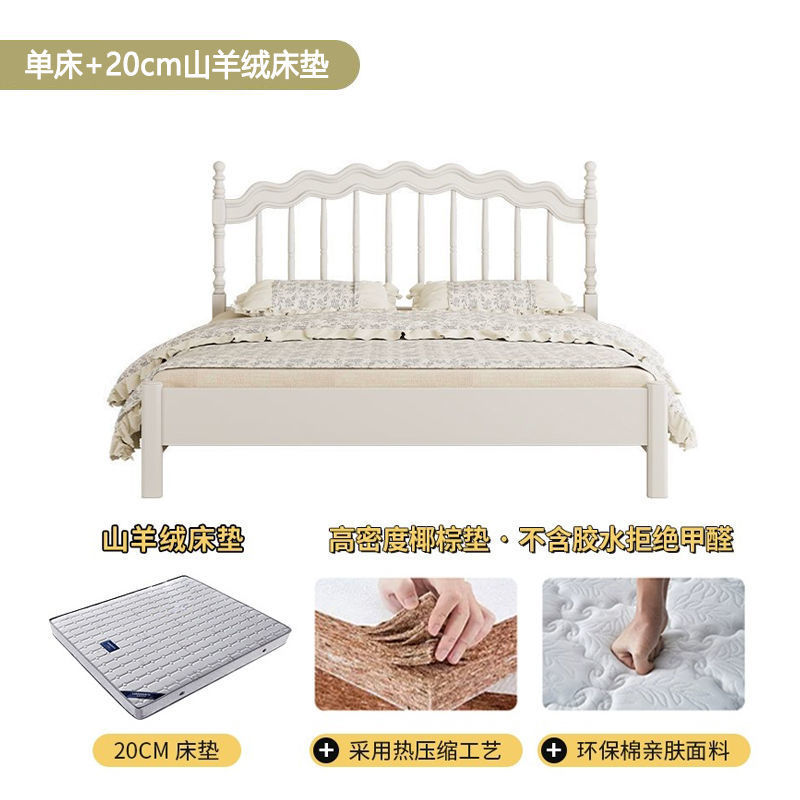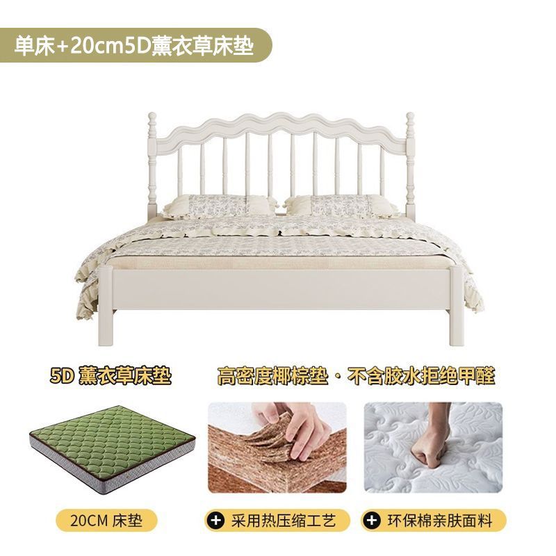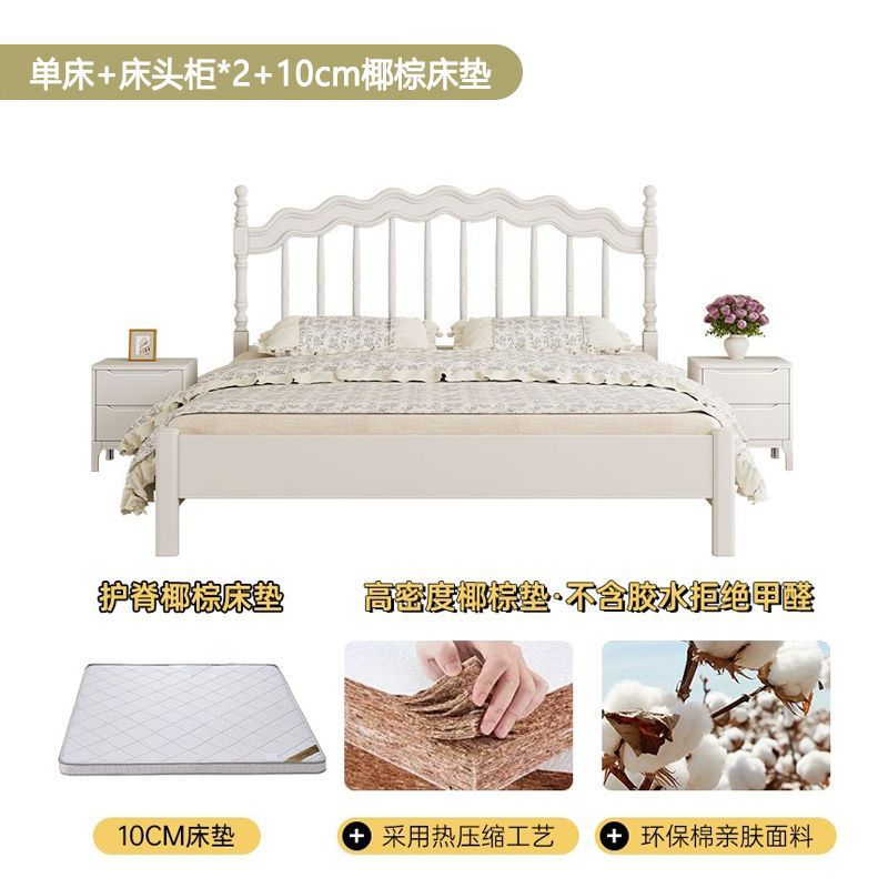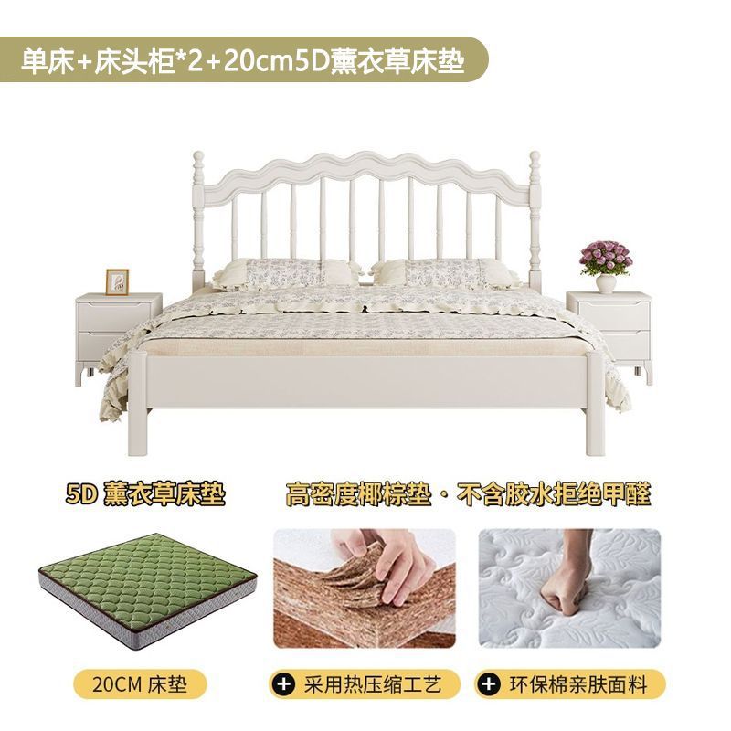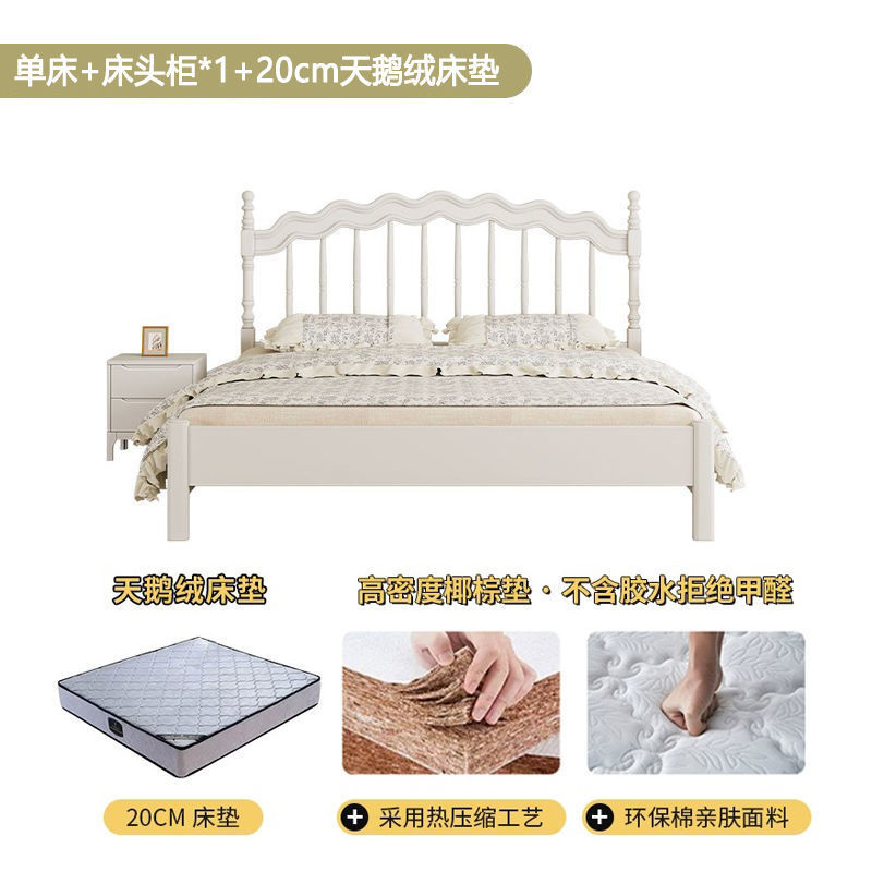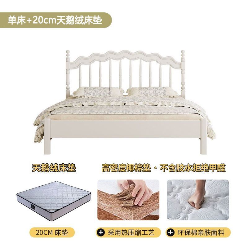프랑스 단단한 나무 침대 흰색 윈저 침대 크림 바람 1.8 미터 1.5m 단일 복고풍 미국 공주 침대 작은 아파트