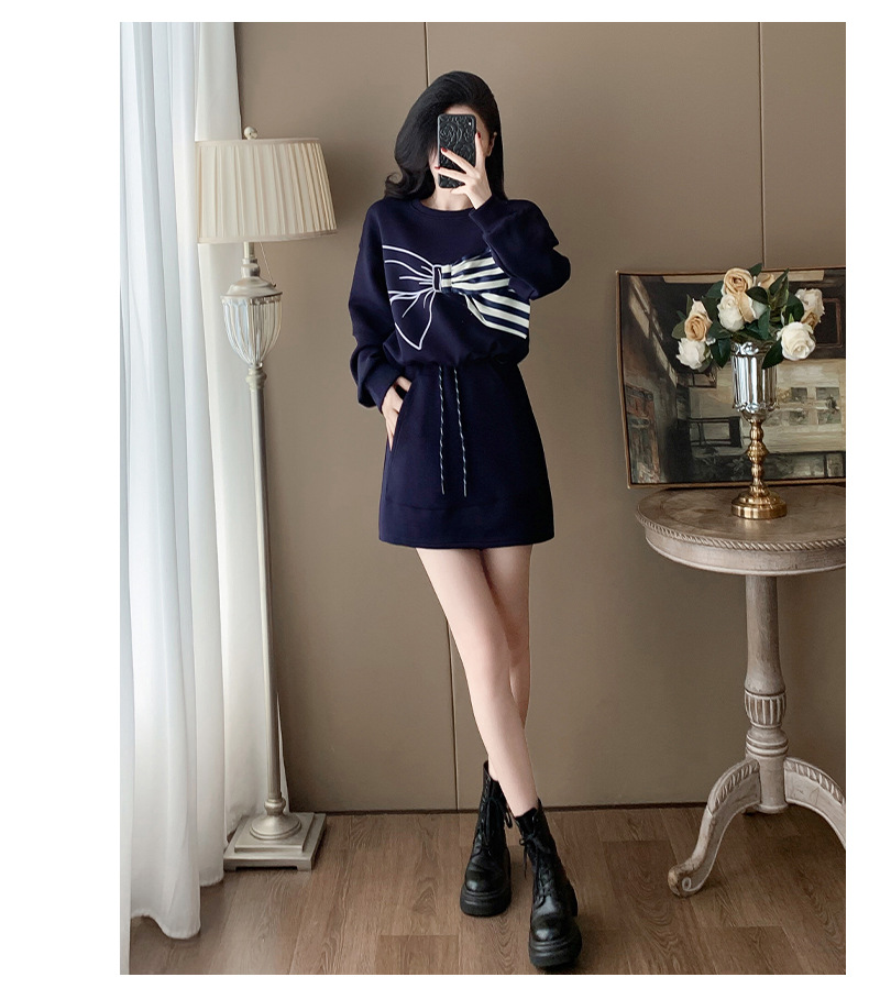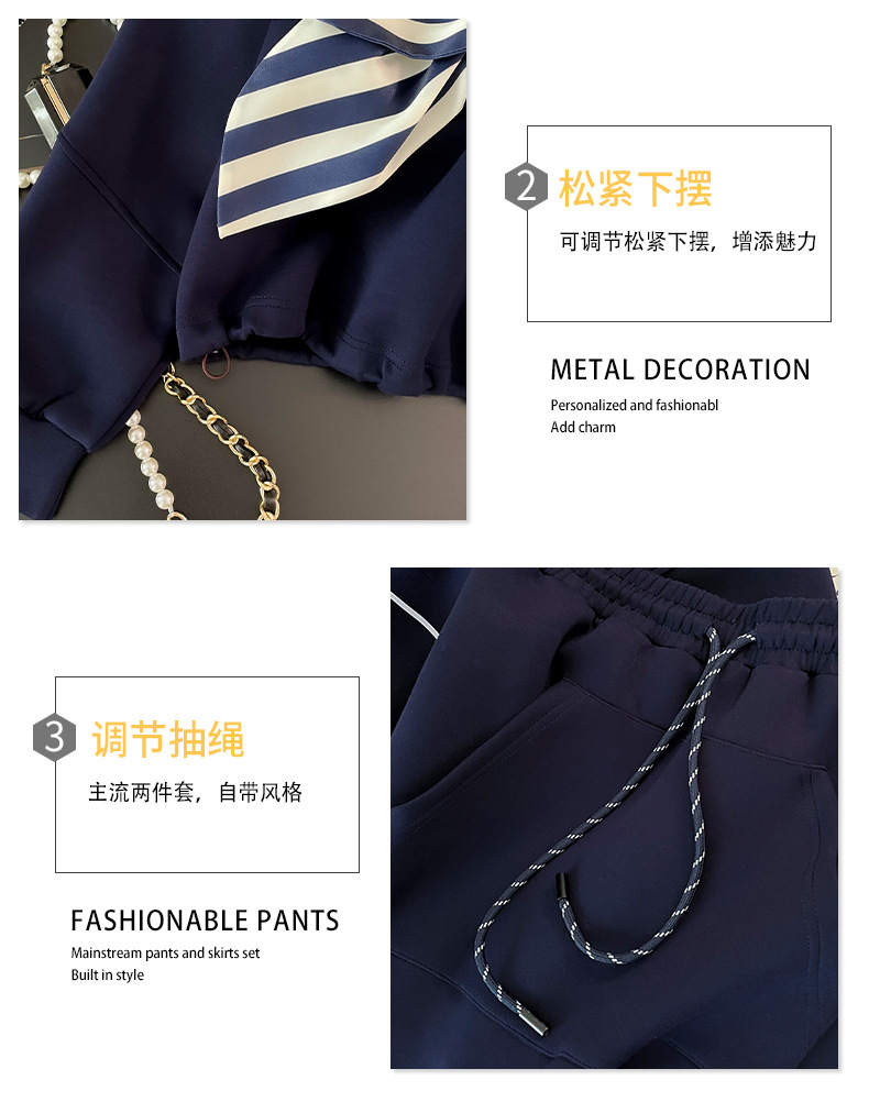 2025 가을 겨울 신상 리본 패션 캐주얼 세트 허리 조절 스웨트셔츠 슬림핏 루즈핏 여성 투피스 세트스토어 가기