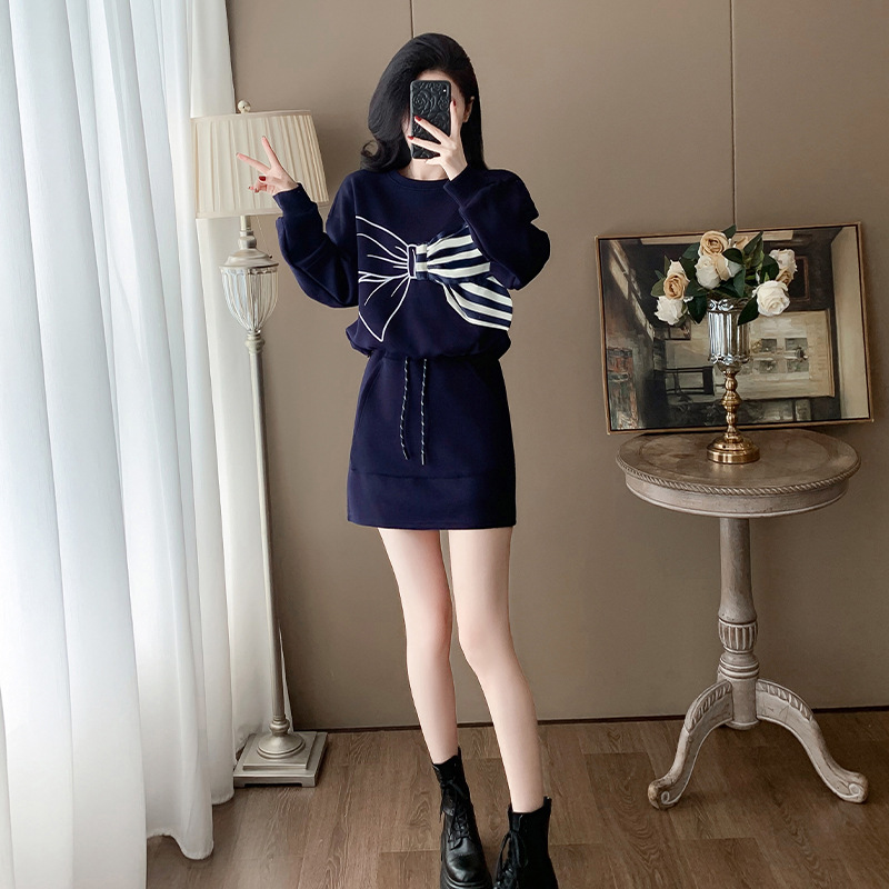 2025 가을 겨울 신상 리본 패션 캐주얼 세트 허리 조절 스웨트셔츠 슬림핏 루즈핏 여성 투피스 세트