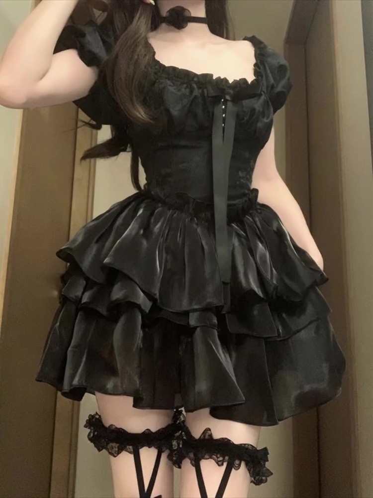 뚱뚱한 프랑스 스타일 순수한 욕망 디자인 센스 버블 슬리브 원피스 플러스 사이즈 달콤한 스파이스 소녀 타이트 허리 공주 스타일 케이크 투투 원피스스토어 가기