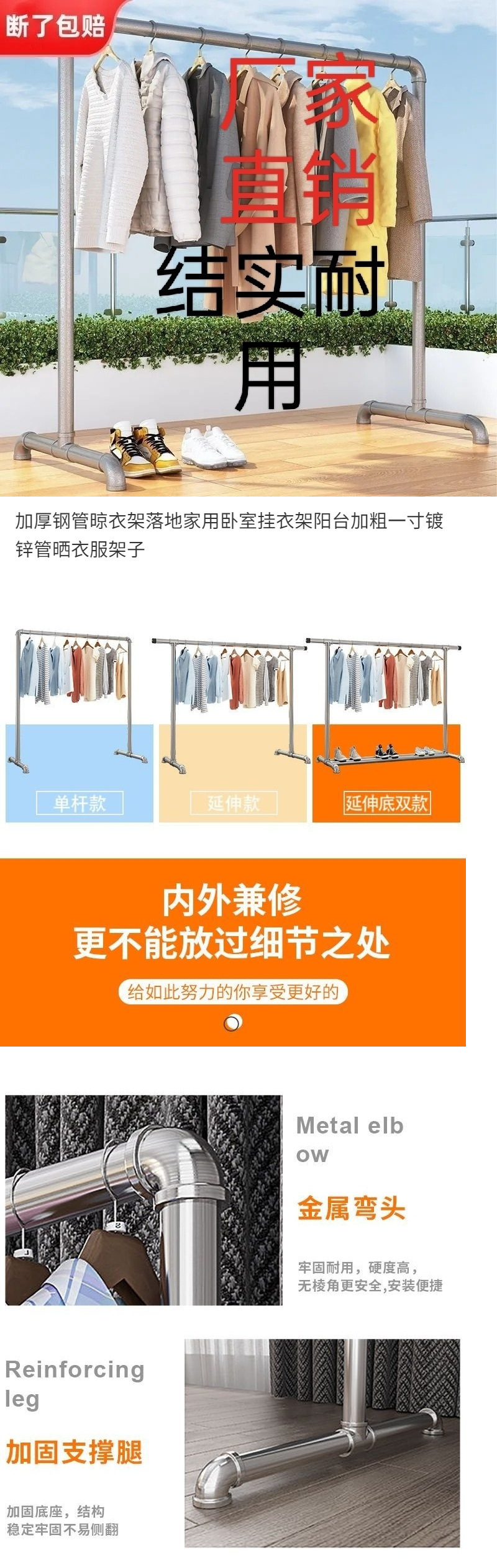 건조 랙 바닥 옷걸이 바닥 극 아연 도금 강관 옷걸이 발코니 홈 야외 건조 의류 도매스토어 가기