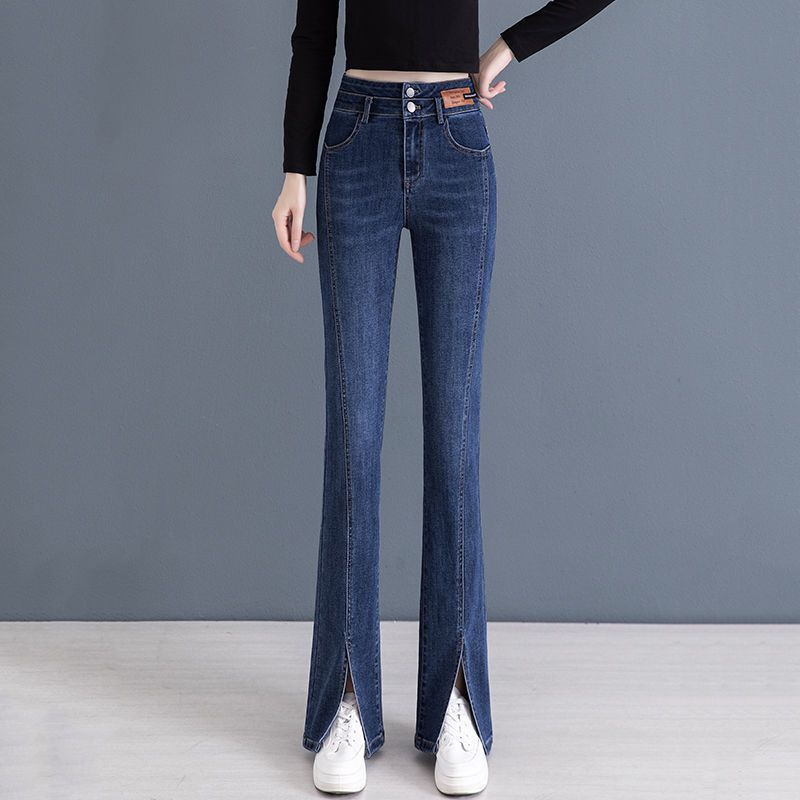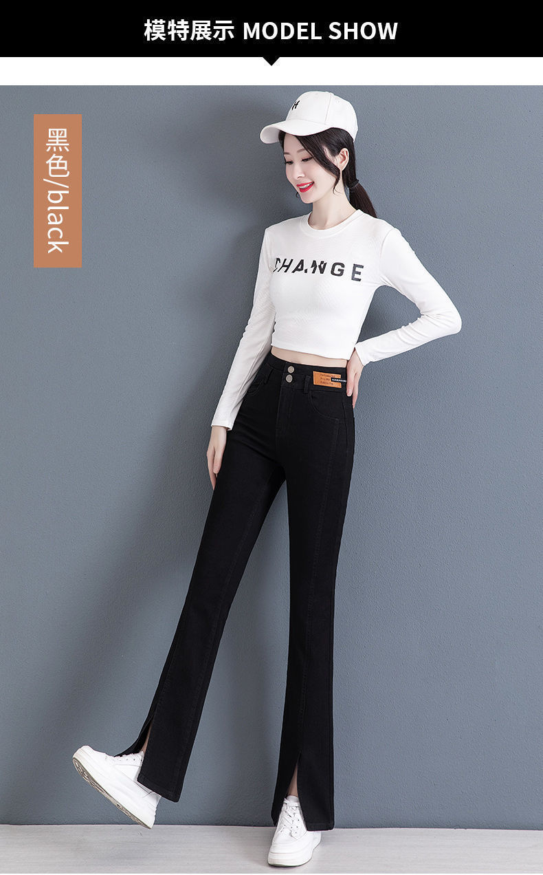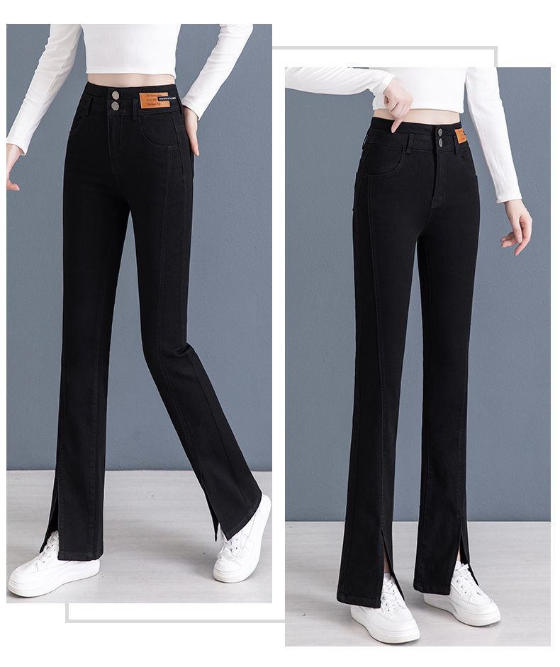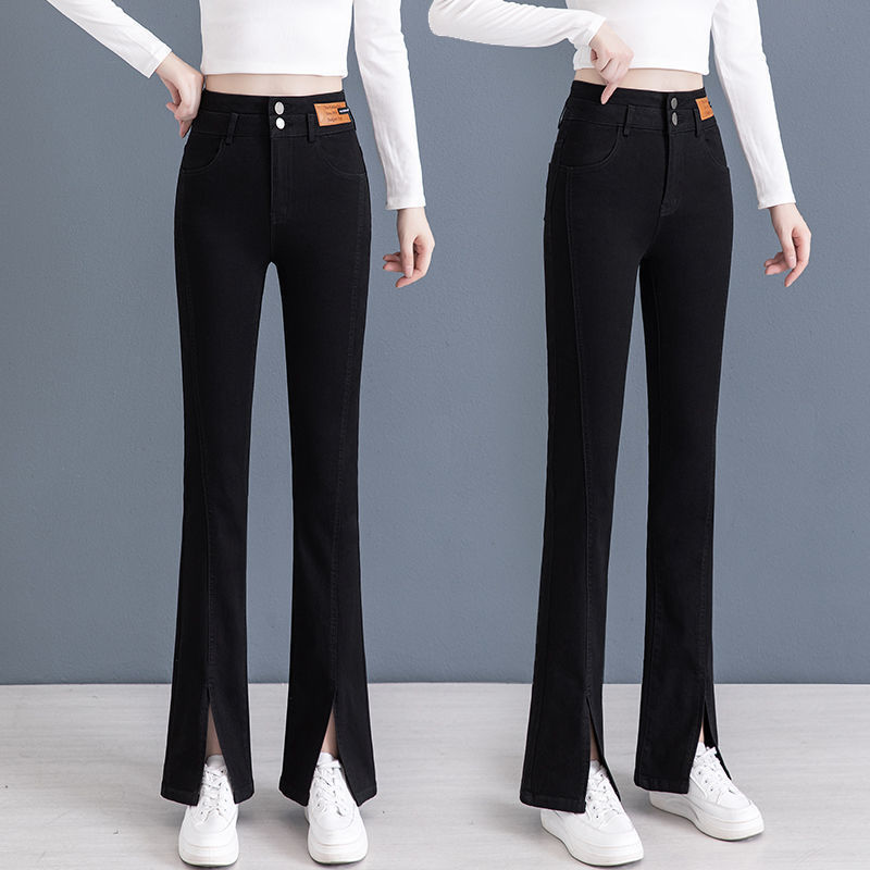 2024 새로운 블랙 하이 웨이스트 슬러리 청바지 여성의 봄과 가을 스플릿 스트레치 키가 큰 슬림 바지스토어 가기