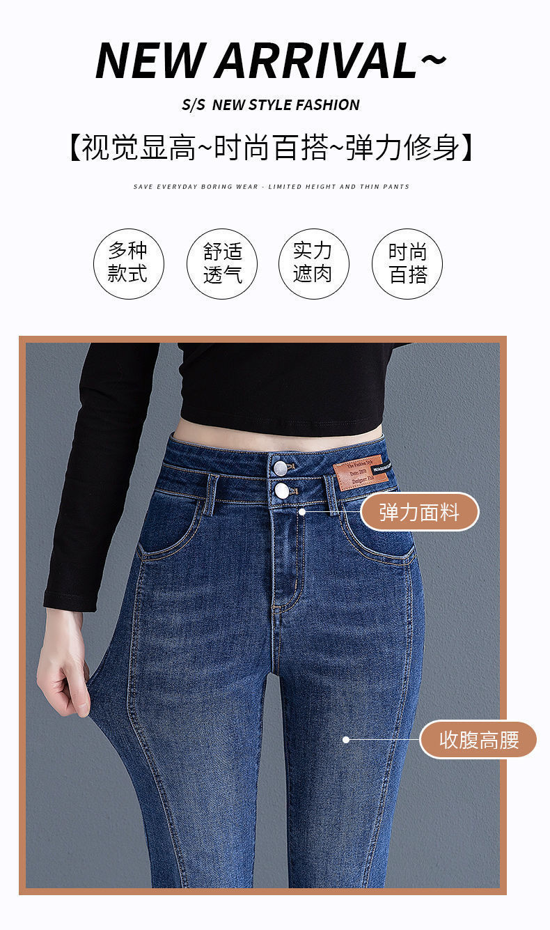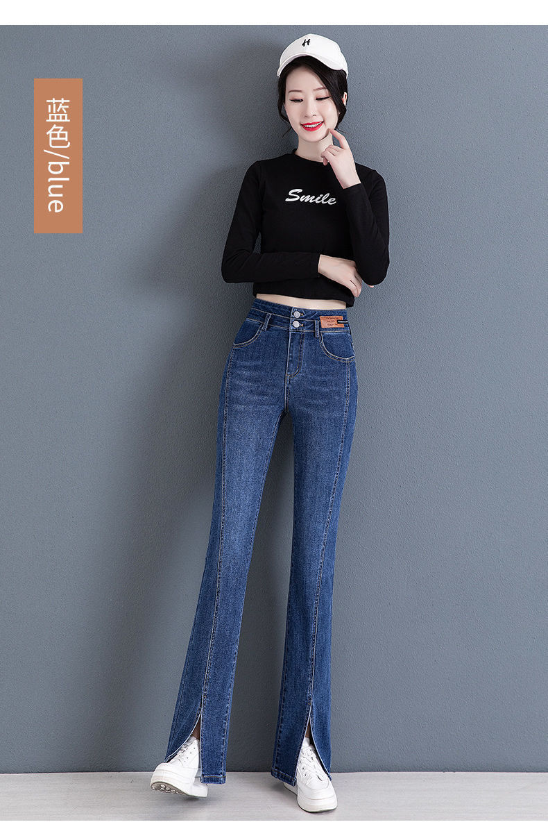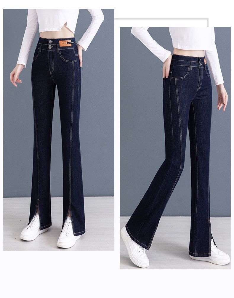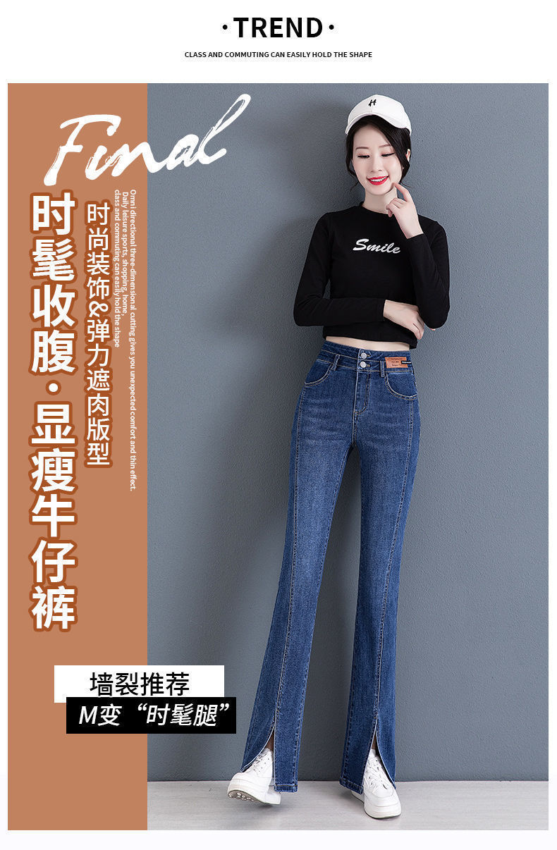 2024 새로운 블랙 하이 웨이스트 슬러리 청바지 여성의 봄과 가을 스플릿 스트레치 키가 큰 슬림 바지스토어 가기