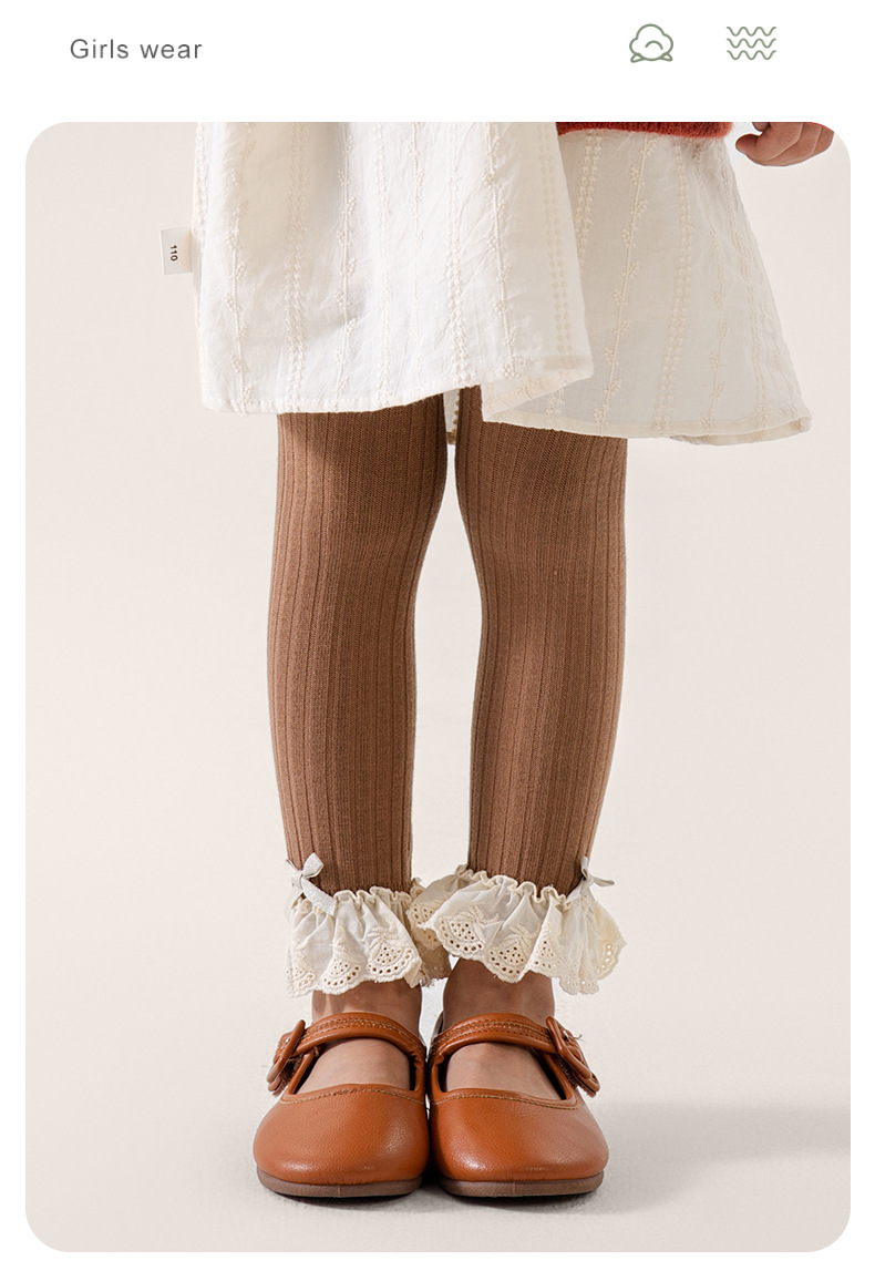2025 새로운 레깅스 와이드 크롭 레이스 바지 다리 어린이 한국 공주 활 아기 아기 스타킹스토어 가기