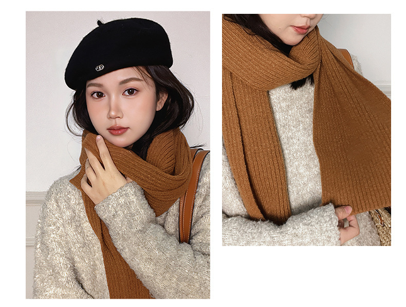 가을과 겨울 새로운 니트 스카프 솔리드 컬러 소프트 왁스 커플 패션 올 매치 간단한 한국 학생 기본 따뜻한 스카프