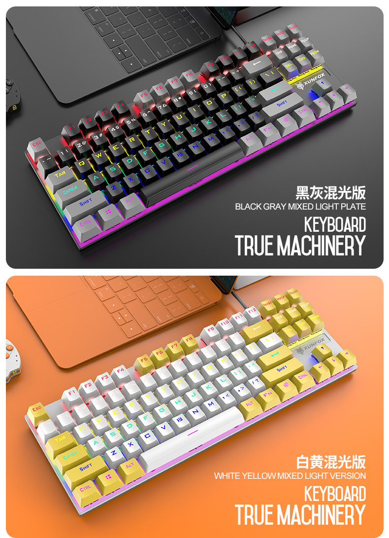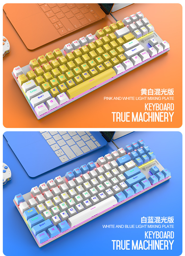 Shun 실버 여우 K80 키보드 컬러 매칭 전자 게임 유선 녹색 축 발광 데스크탑 컴퓨터 노트북 공장 직접 판매스토어 가기