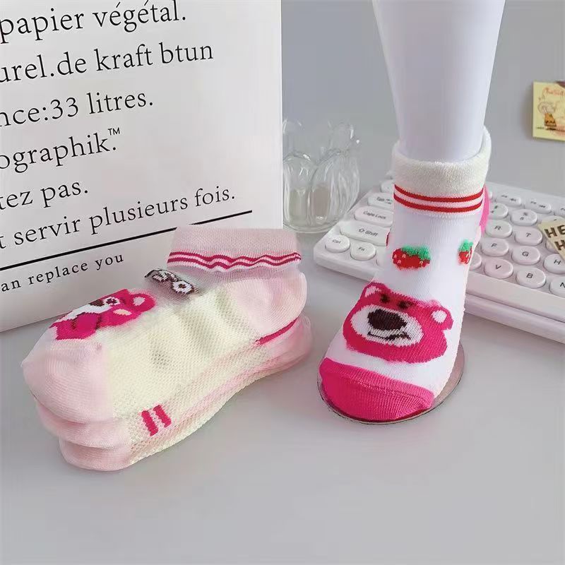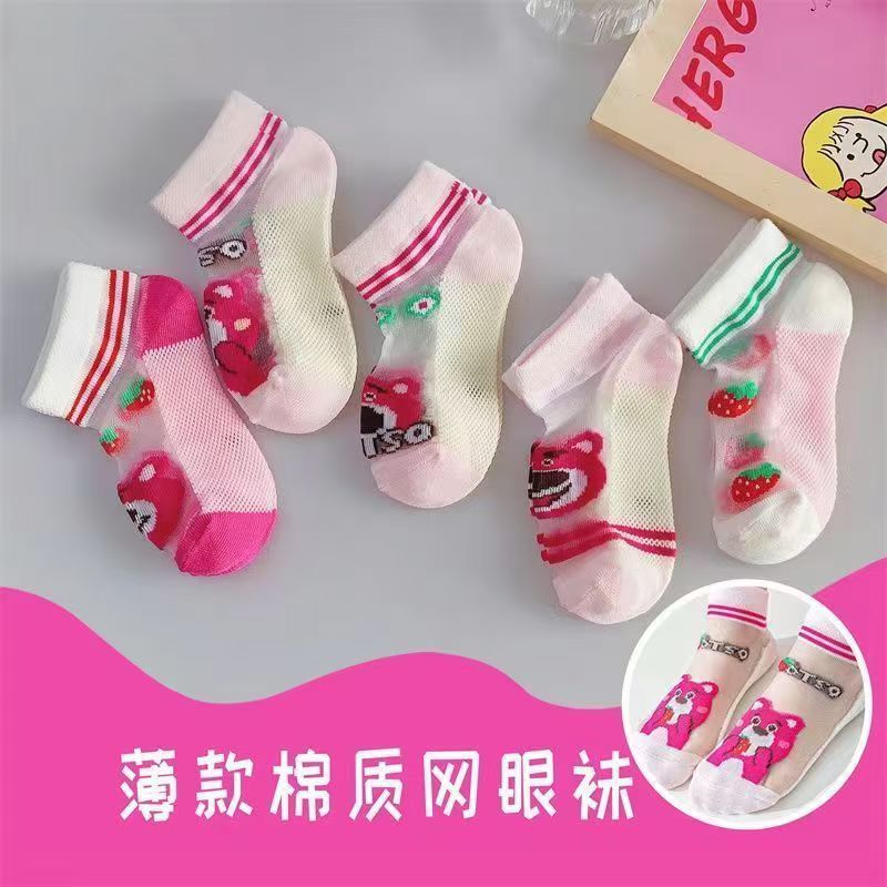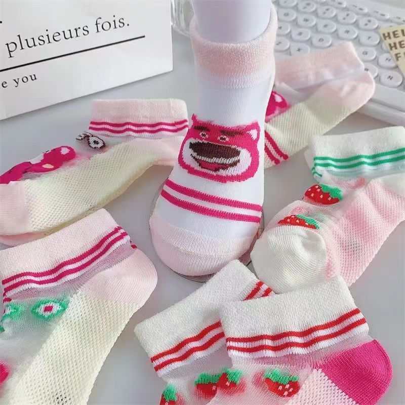 여름 귀여운 공주 소녀 크리스탈 실크 짧은 양말 딸기 곰 양말 소녀 미끄럼 방지 양말 여름 인터넷 인기 양말스토어 가기