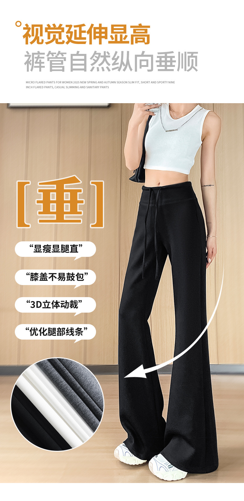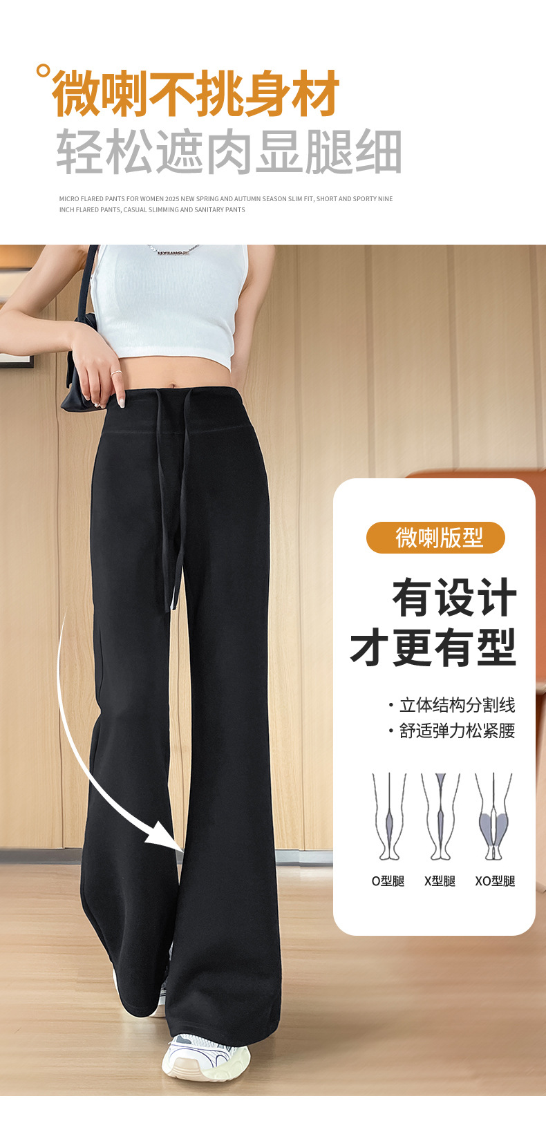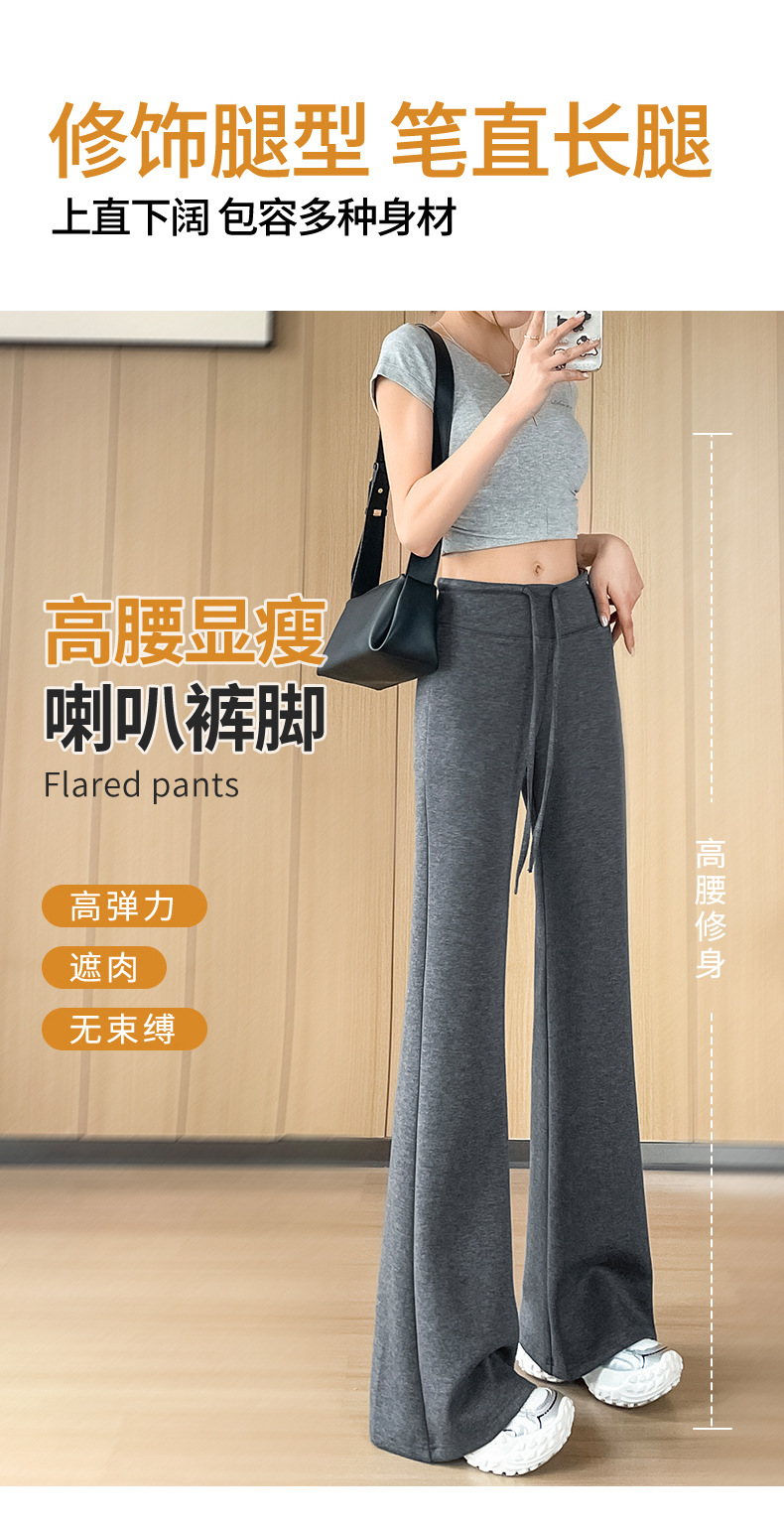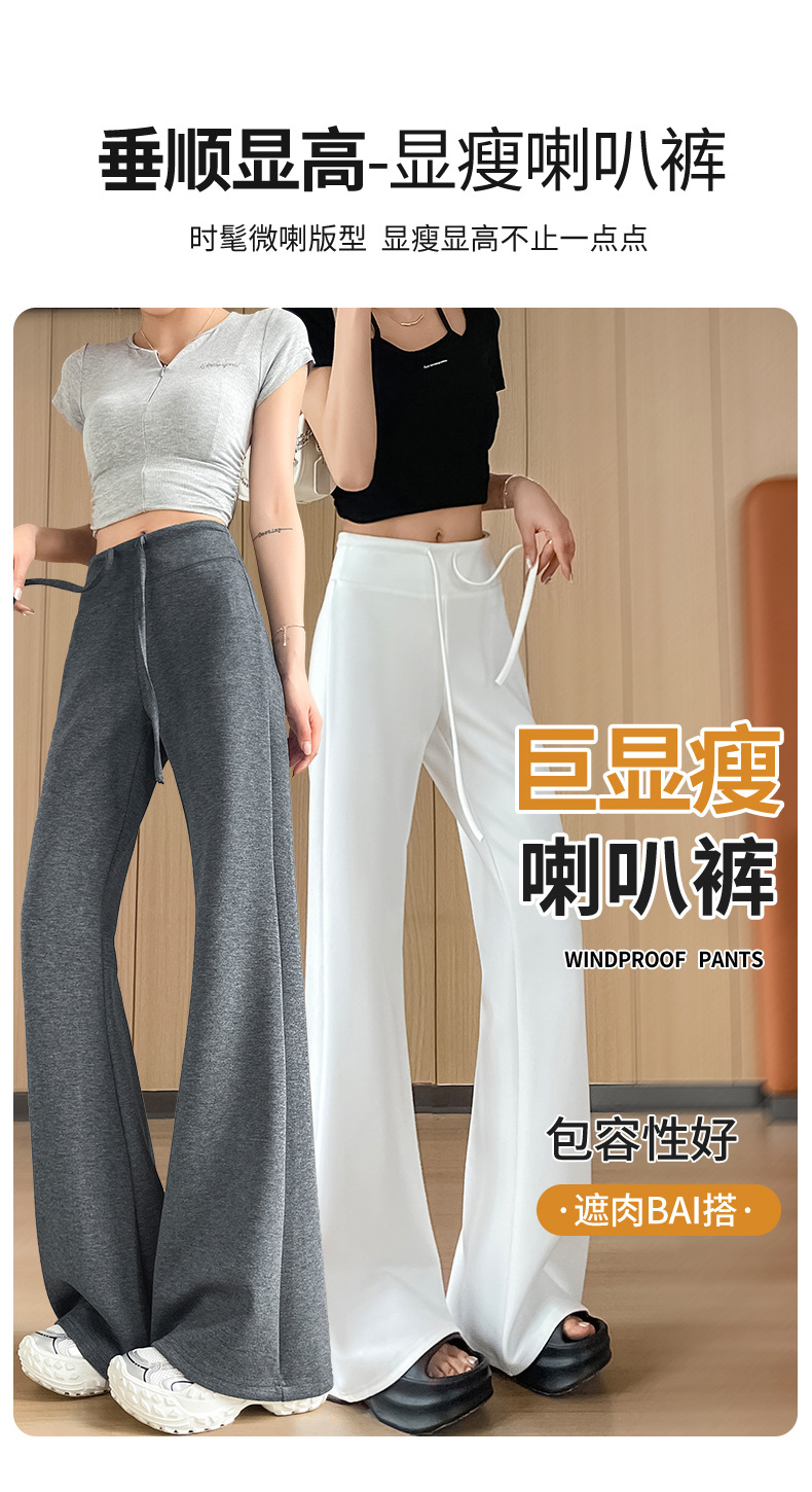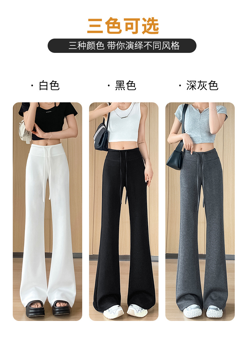 마이크로 혼 스트레이트 다리 바지 봄과 여름 2025 새로운 스티커 쌀 높은 허리 슬리밍 넓은 다리 캐주얼 바지 화이트스토어 가기