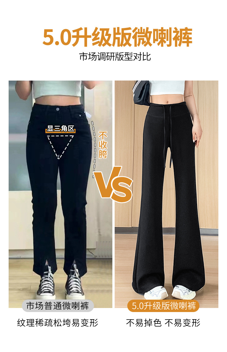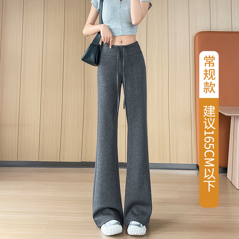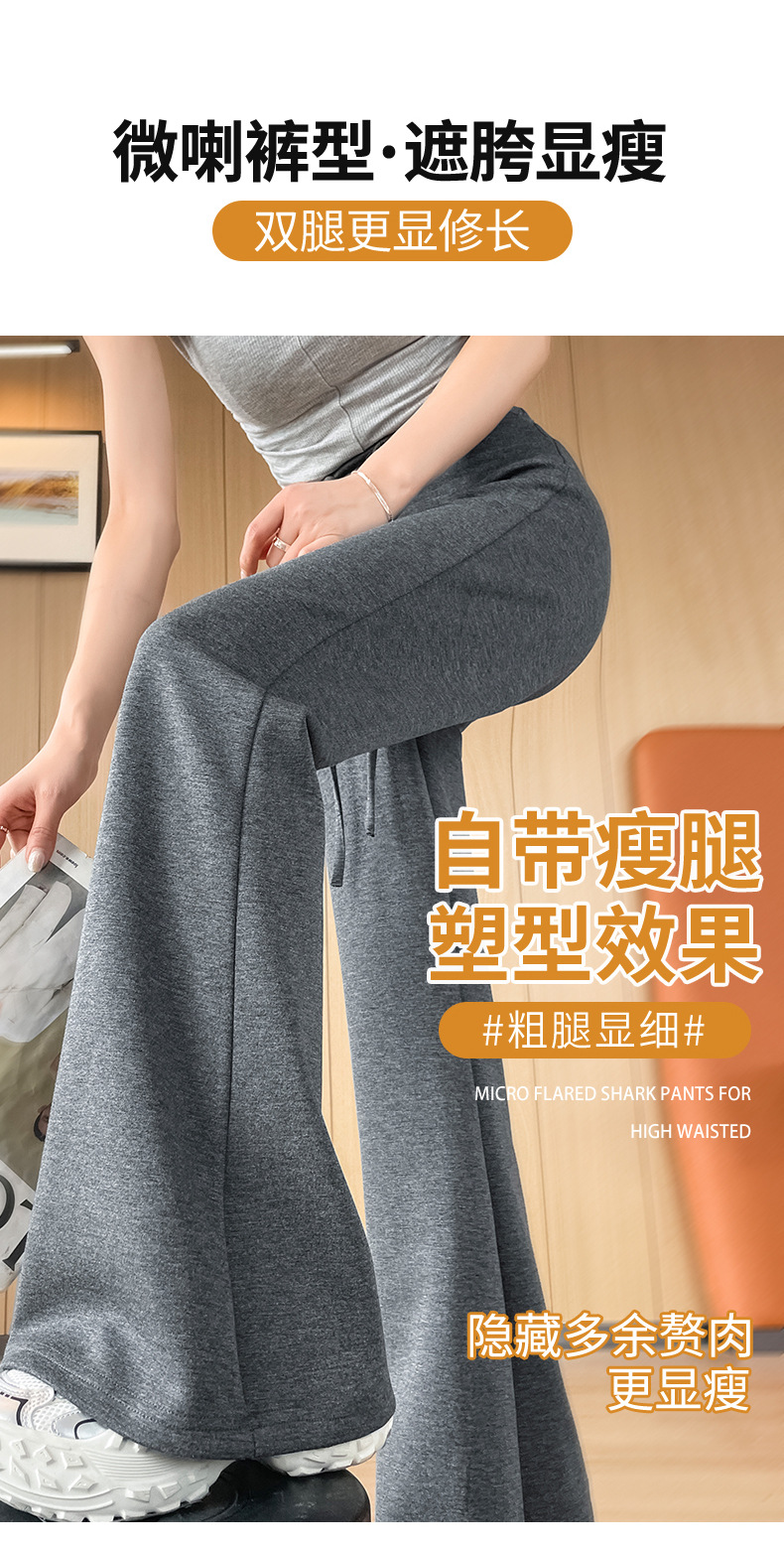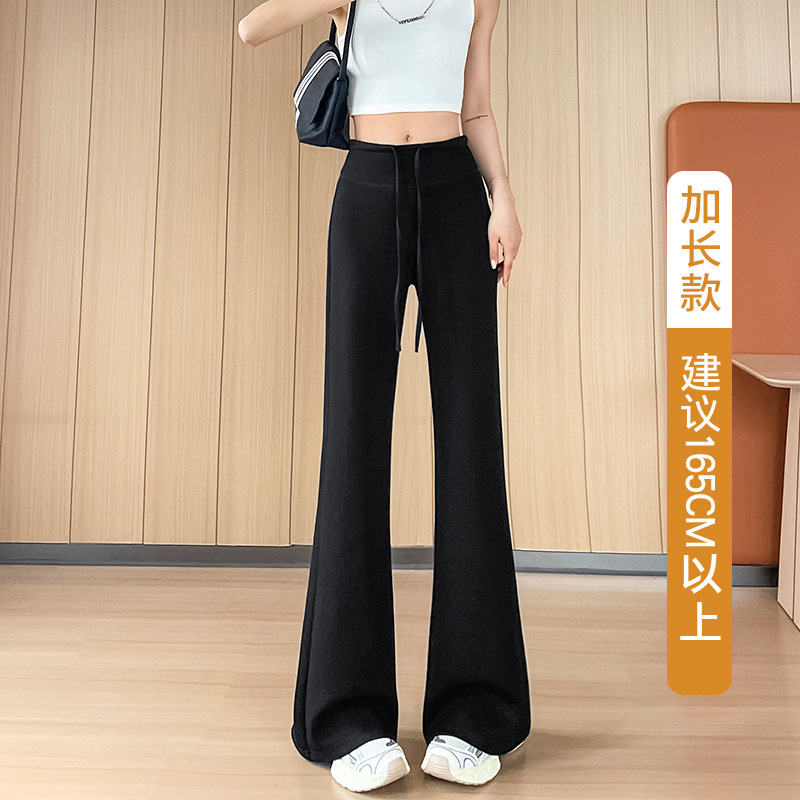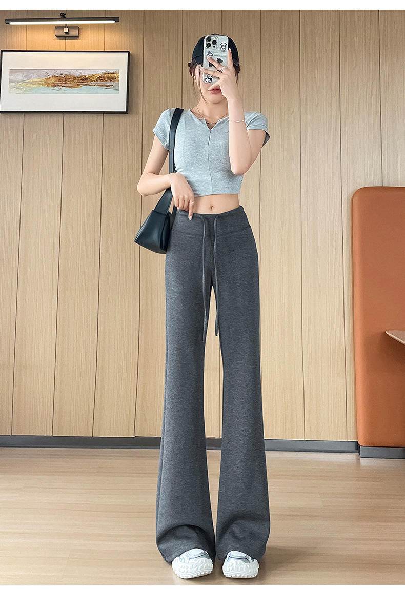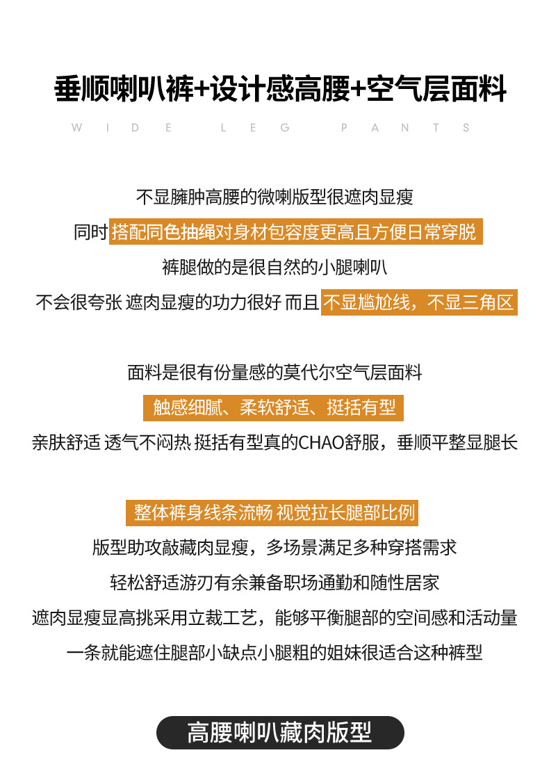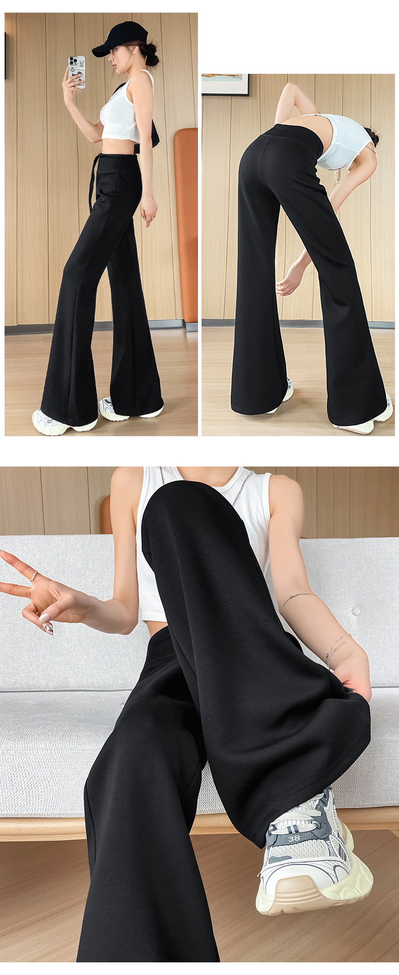 마이크로 혼 스트레이트 다리 바지 봄과 여름 2025 새로운 스티커 쌀 높은 허리 슬리밍 넓은 다리 캐주얼 바지 화이트스토어 가기