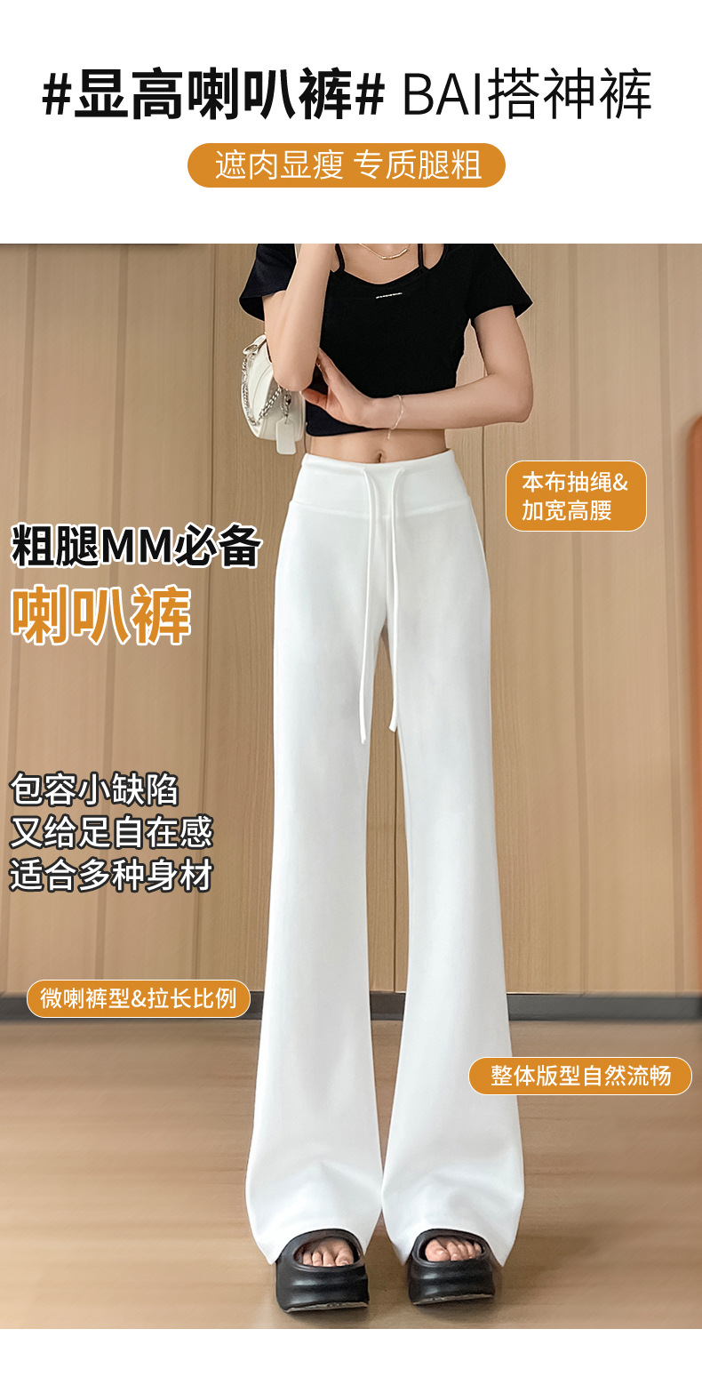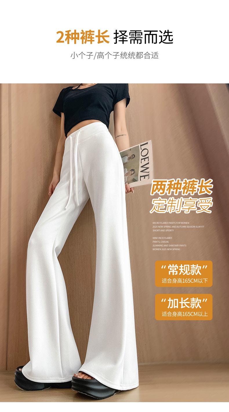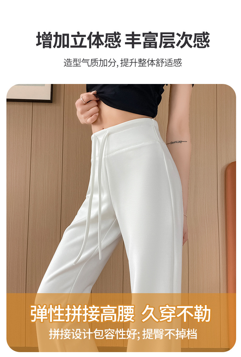 마이크로 혼 스트레이트 다리 바지 봄과 여름 2025 새로운 스티커 쌀 높은 허리 슬리밍 넓은 다리 캐주얼 바지 화이트
