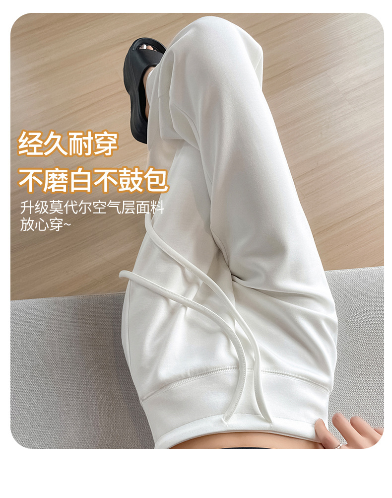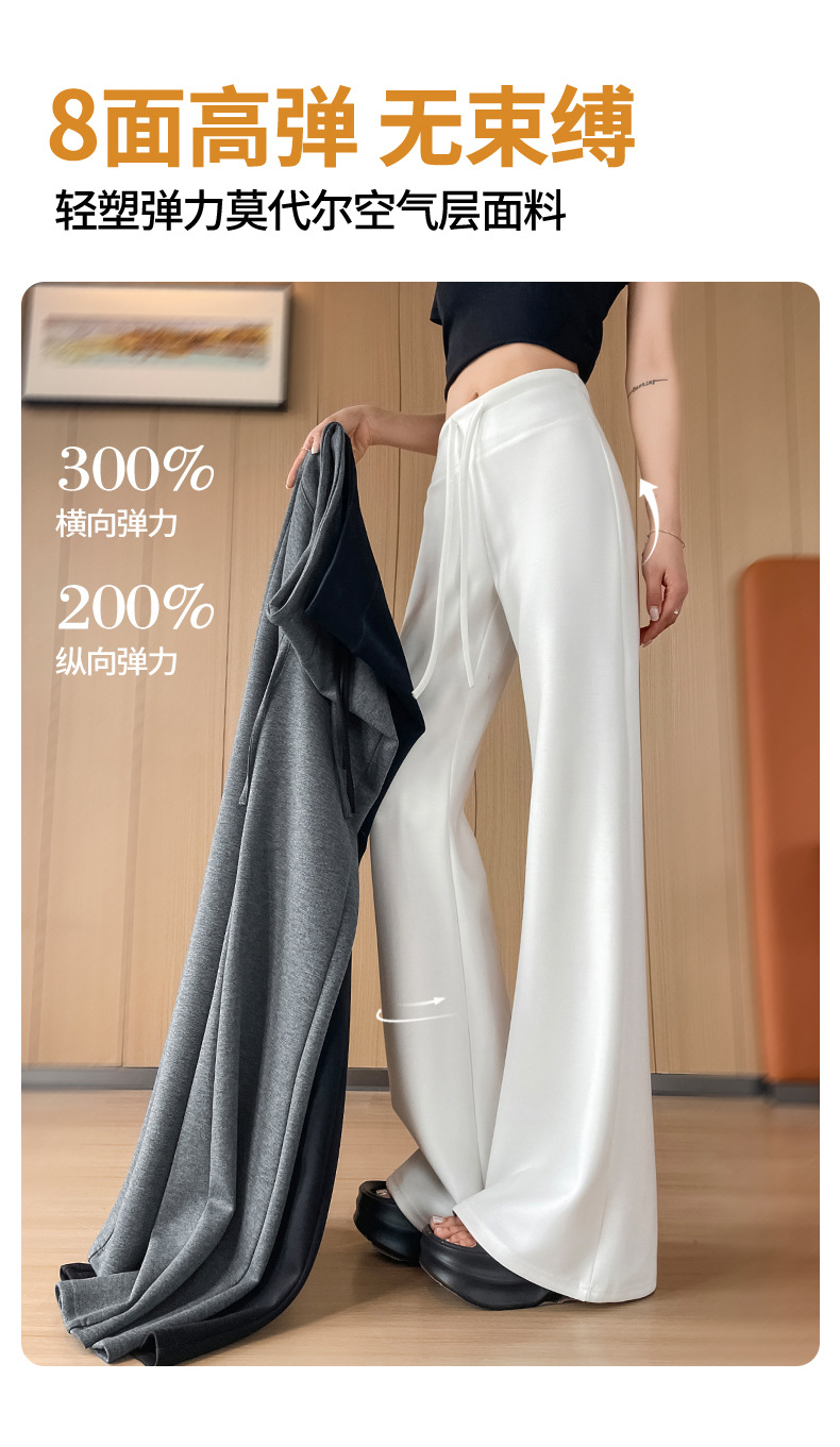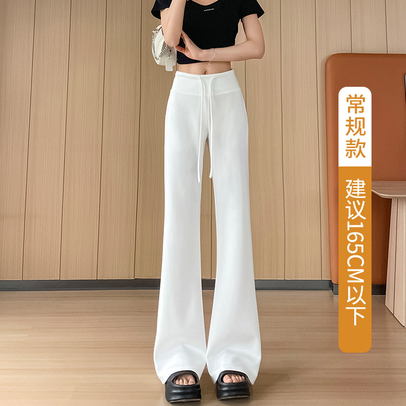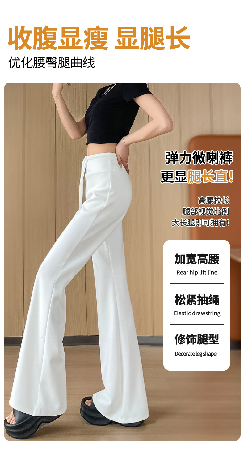 마이크로 혼 스트레이트 다리 바지 봄과 여름 2025 새로운 스티커 쌀 높은 허리 슬리밍 넓은 다리 캐주얼 바지 화이트