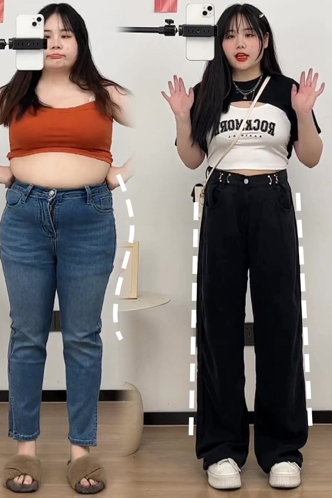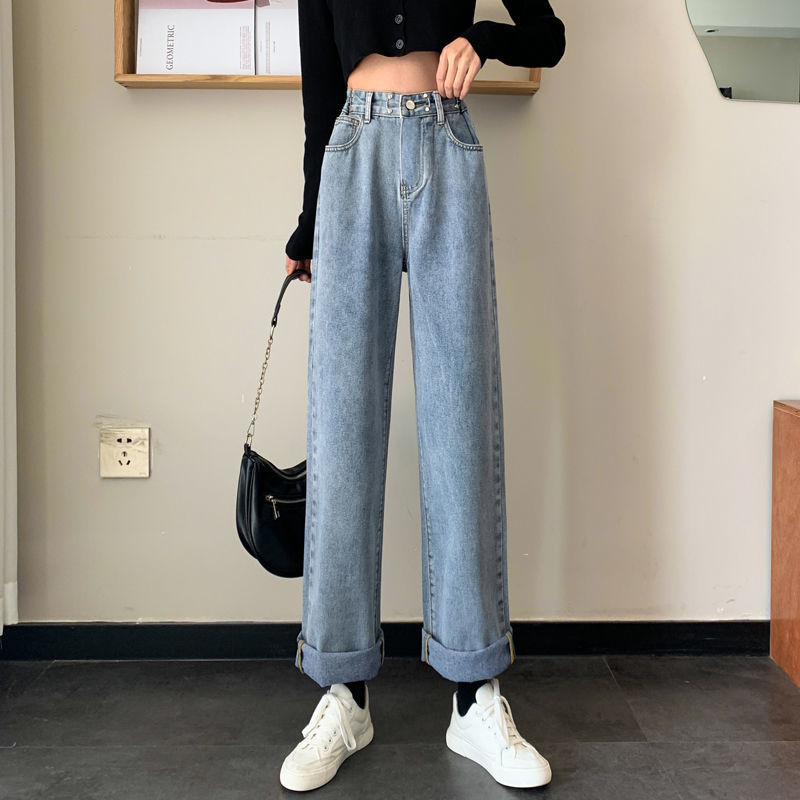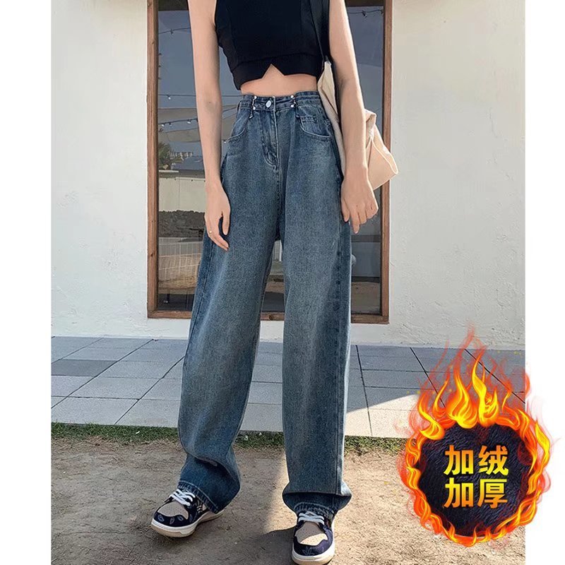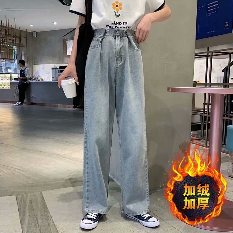 플러스 사이즈 넓은 다리 청바지 여성의 새로운 통통녀 느슨한 슬리밍 스트레이트 올 매치 배 모양의 몸 두꺼운 엉덩이 넓은 바지스토어 가기