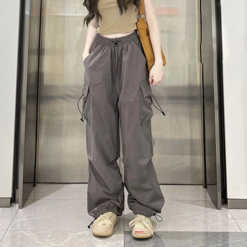 아메리칸 스타일 레트로 다리 도구 바지 여성의 봄과 가을 학생 느슨한 슬리밍 플러스 사이즈 스트레이트 Ins 캐주얼 와이드 레그 바지스토어 가기