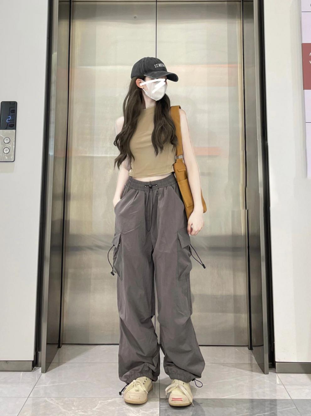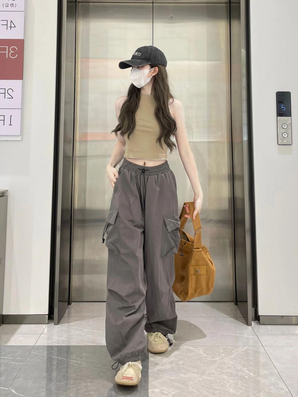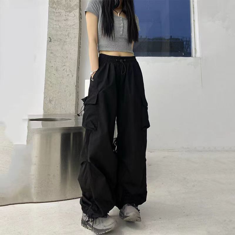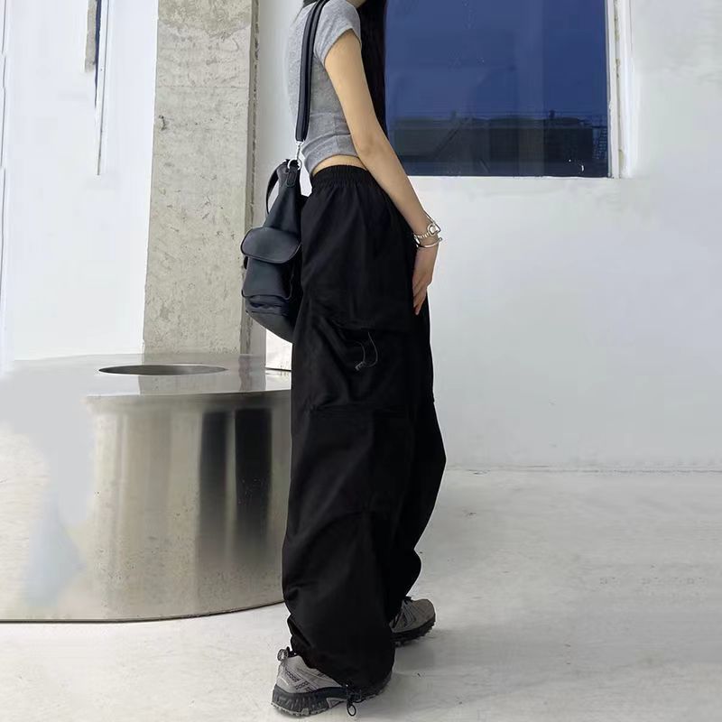 아메리칸 스타일 레트로 다리 도구 바지 여성의 봄과 가을 학생 느슨한 슬리밍 플러스 사이즈 스트레이트 Ins 캐주얼 와이드 레그 바지