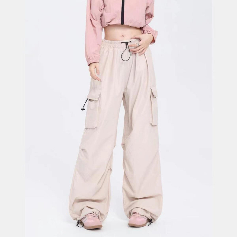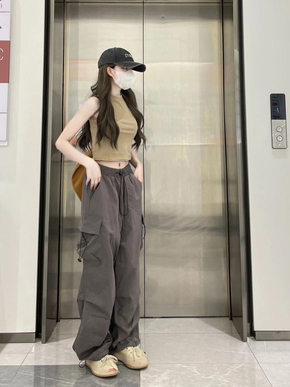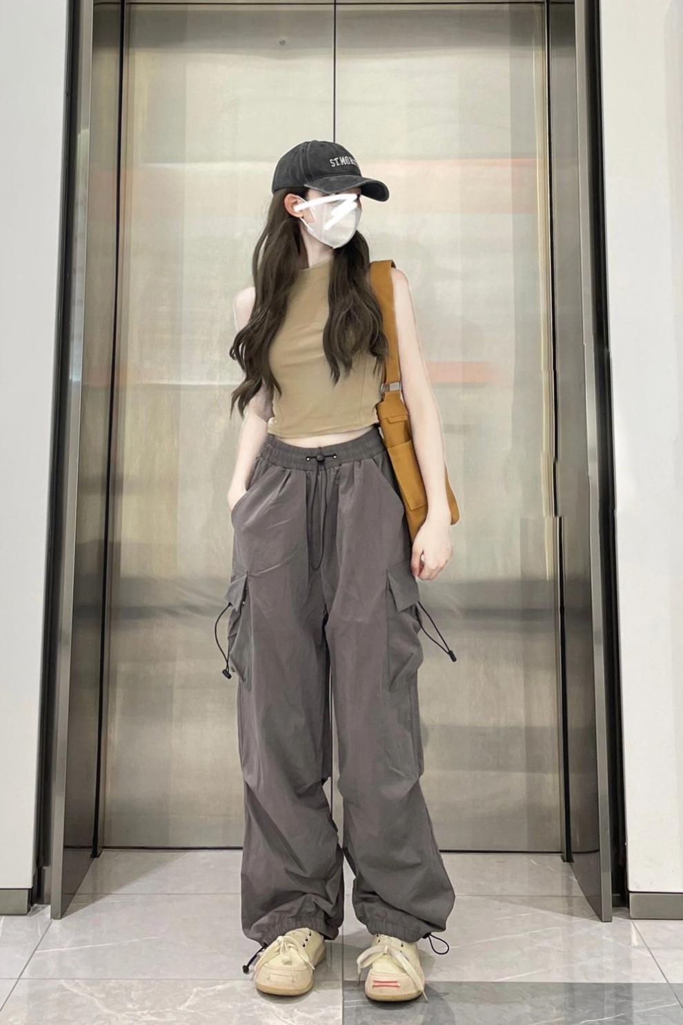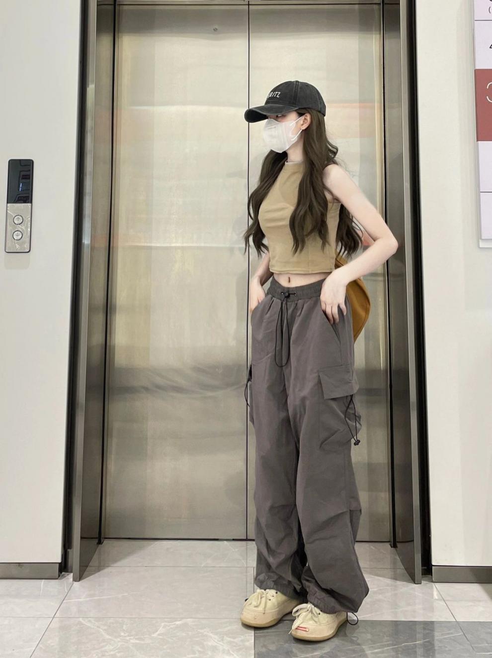 아메리칸 스타일 레트로 다리 도구 바지 여성의 봄과 가을 학생 느슨한 슬리밍 플러스 사이즈 스트레이트 Ins 캐주얼 와이드 레그 바지