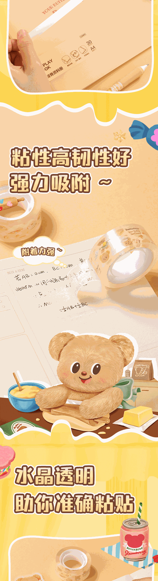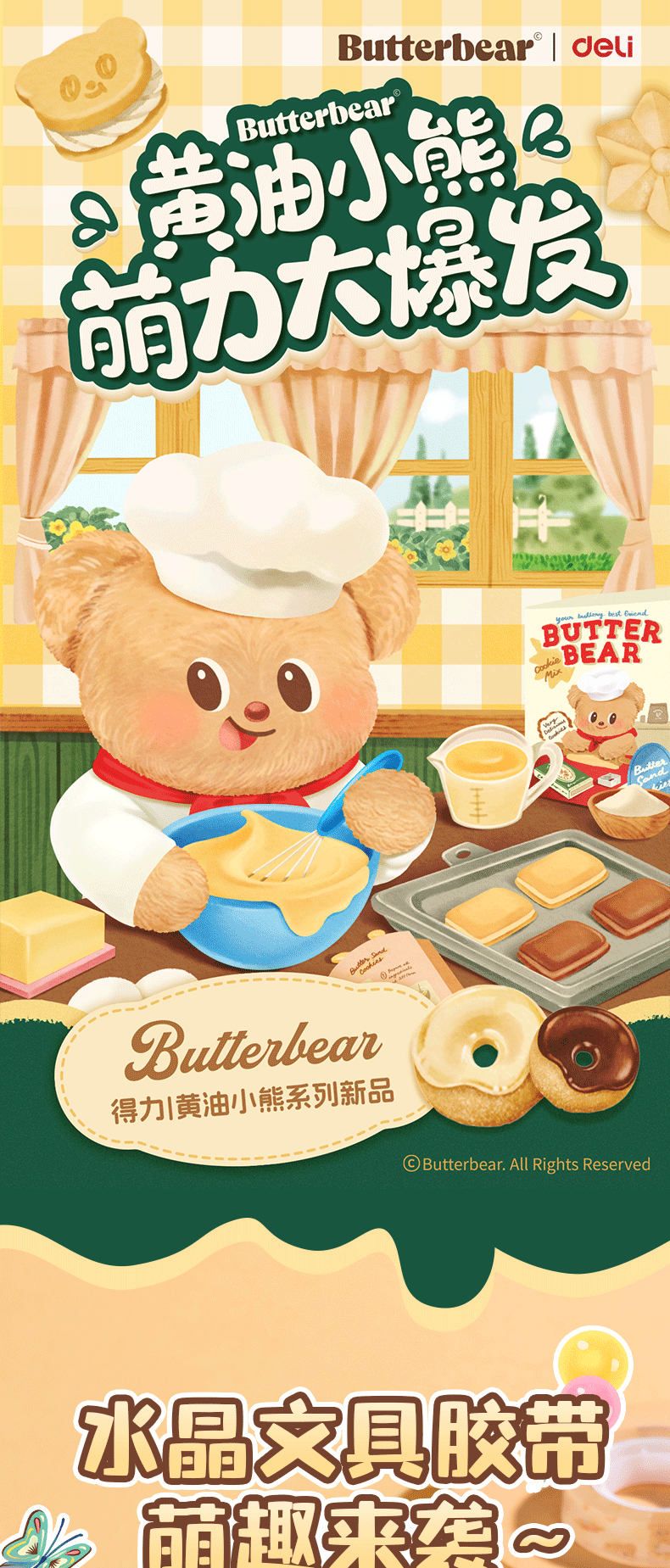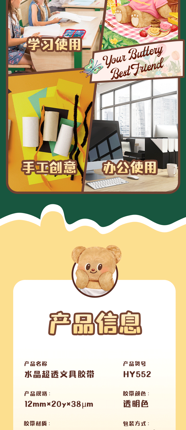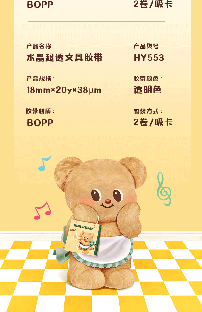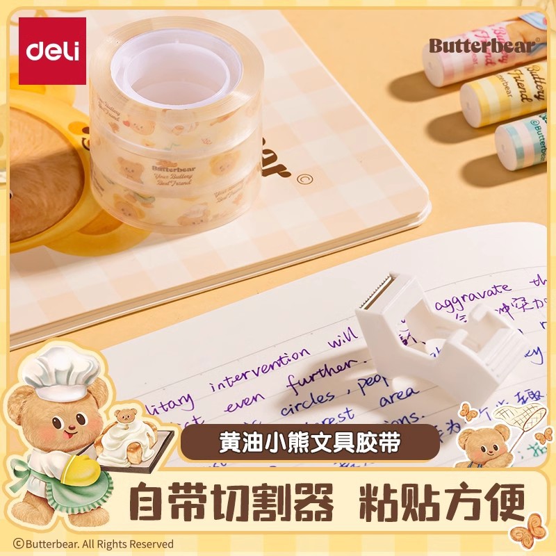 델리 HY553 버터 곰 문구 테이프 18mm * 20y * 38um (투명)(2 롤/카드)