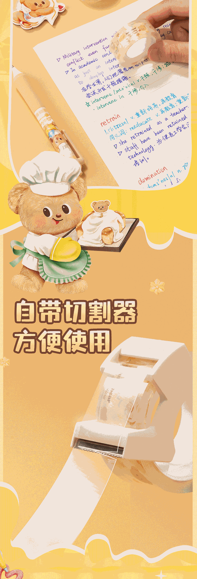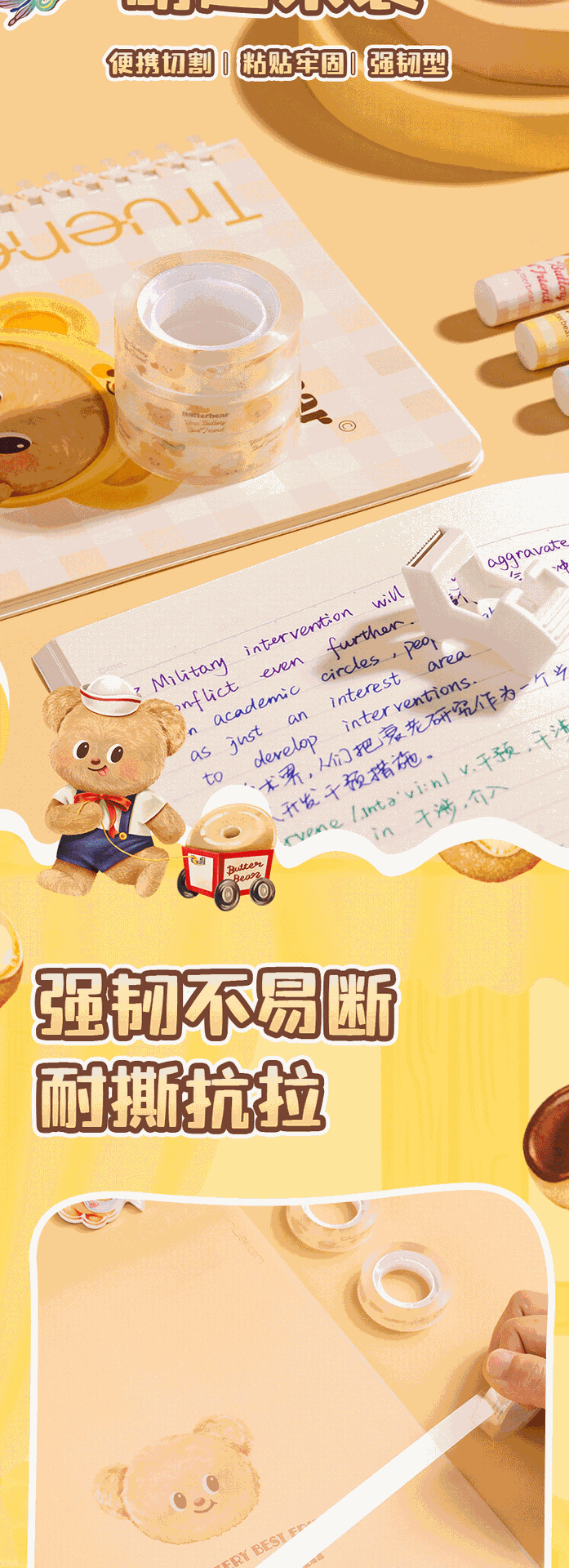 델리 HY553 버터 곰 문구 테이프 18mm * 20y * 38um (투명)(2 롤/카드)스토어 가기